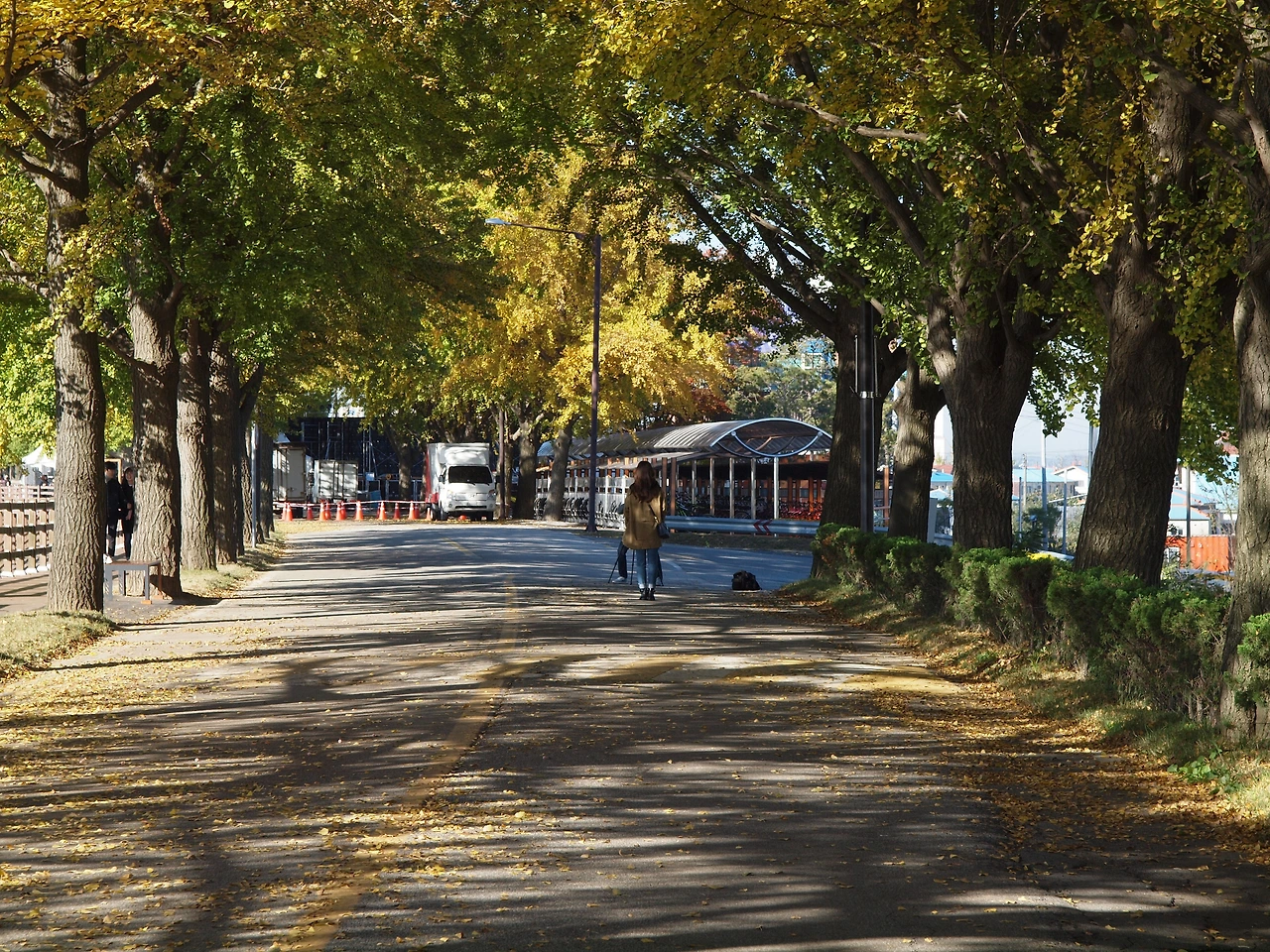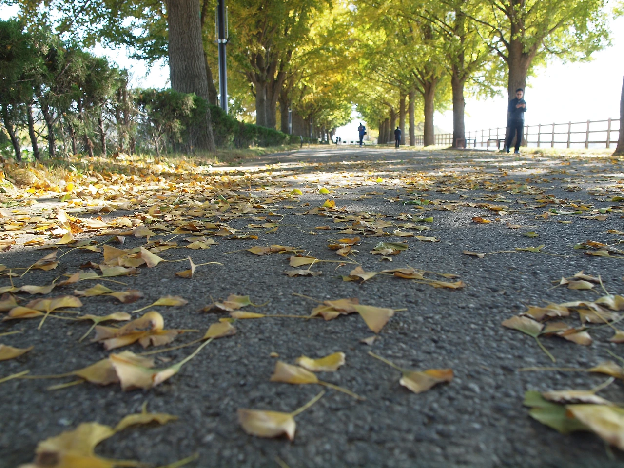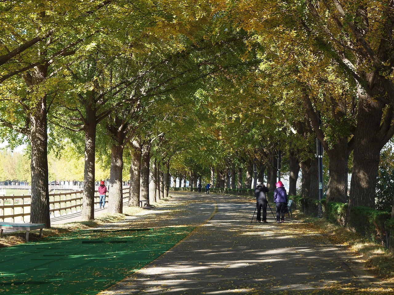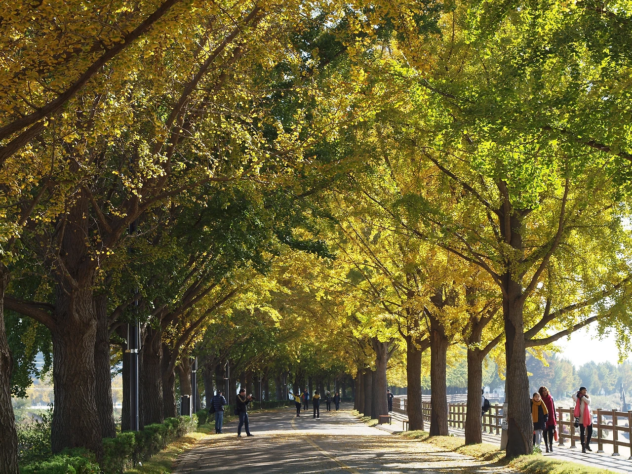 차가왔던 아침 공기는 시간이 지날수록 점점 더 따뜻해지고 있습니다. 노란 터널에는 이전보다 더 많은 사람들이 길을 걷고 있습니다. 사람들은 여전히 여유롭습니다. 햇살이 따스했던 이 킬로 남짓한 은행나무 길 위에선 사람들의 다양한 삶을 볼 수 있었습니다. 그들과 직접 얘기해 본 것은 아니었지만 사람들은 아름다운 길을 걸으며 여유와 함께 복잡하고 힘들었던 삶의 무게를 잠시나마 내려놓는 듯 보였습니다. 그것은 누구나 받을 수 있는 가을의 공평한 선물이었고, 사람들은 그것에 감사하며 길을 걷습니다. 그렇게 그들은 이 가을 또 하나의 추억을 만들고 있었습니다.