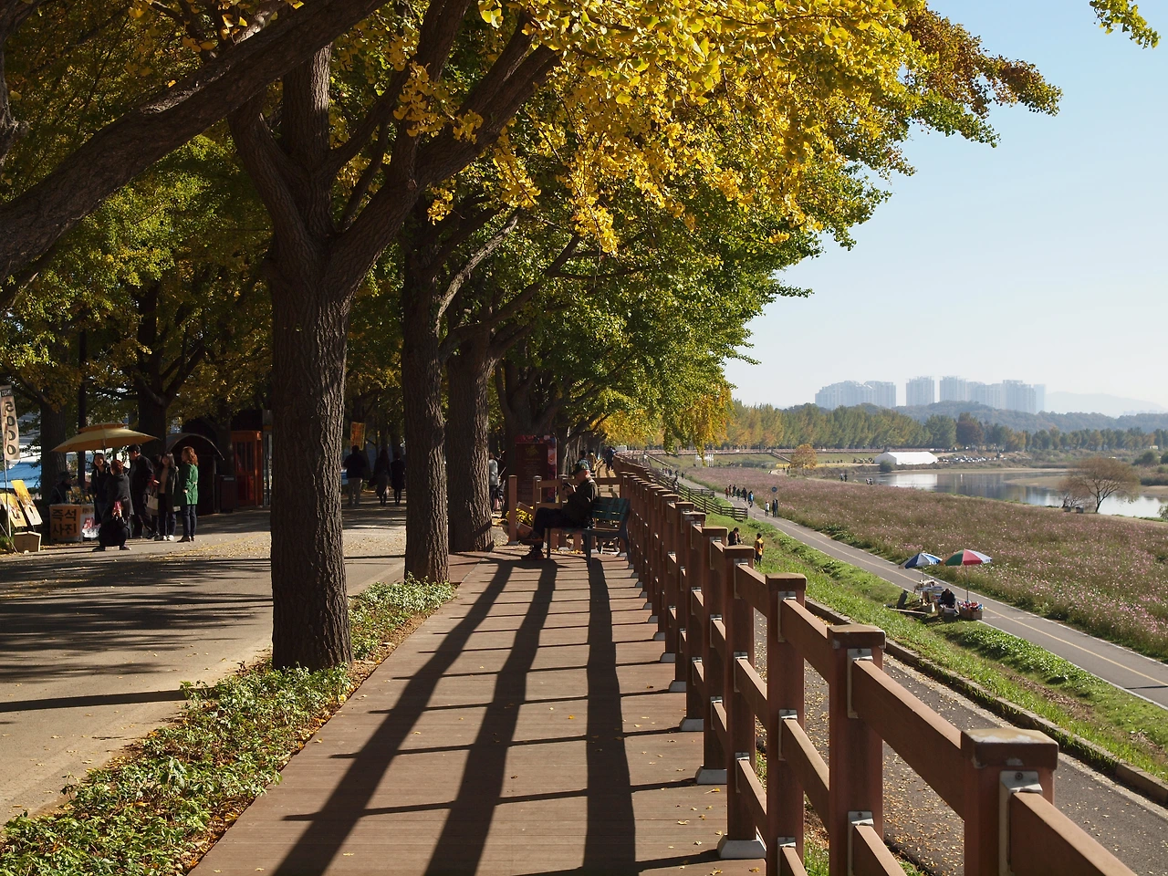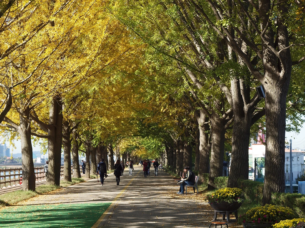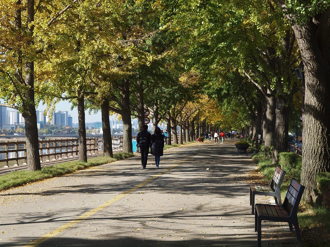 세상은 어지럽고 있을 수 없는 일들이 벌어지고 있습니다. 그래도 그 안타까움과 아픔을 감내하며 우리는 살아가고 있습니다. 명품의 신발을 신지 않아도, 명품의 옷을 입지 않아도 우리는 충분히 행복할 수 있습니다. 오히려 계절의 아름다움을 모른 체, 그리고 이 아름다운 길에 있다 해도 그 순수한 진가를 알지 못하는 마음을 가진 사람이 있다면 정말 불행한 사람일 것입니다. 이 길을 걷는 사람들의 행복한 모습이 사라지지 않았으면 좋겠습니다. 아이도, 가족도, 연인도, 신혼부부도, 다정한 저 노 부부도. 맑고 선명한 가을빛 가득한 이 길처럼 아름답고 투명한 길을 걸으며 살아가는 우리들이 되었으면 좋겠습니다.