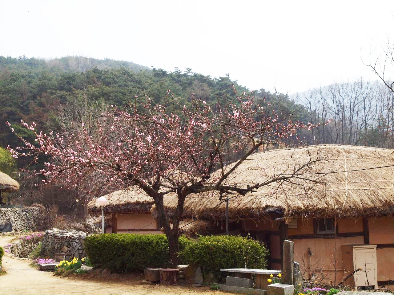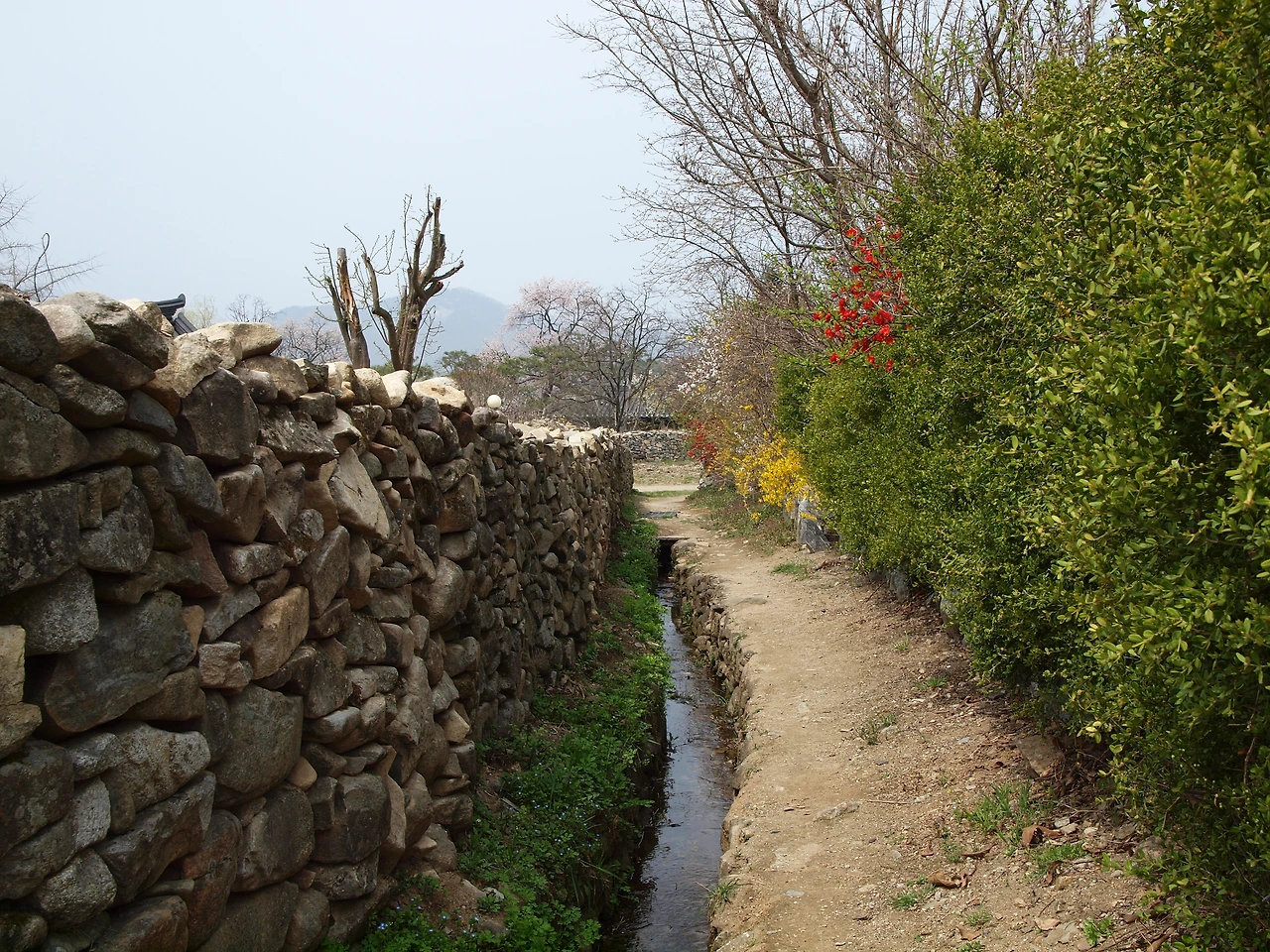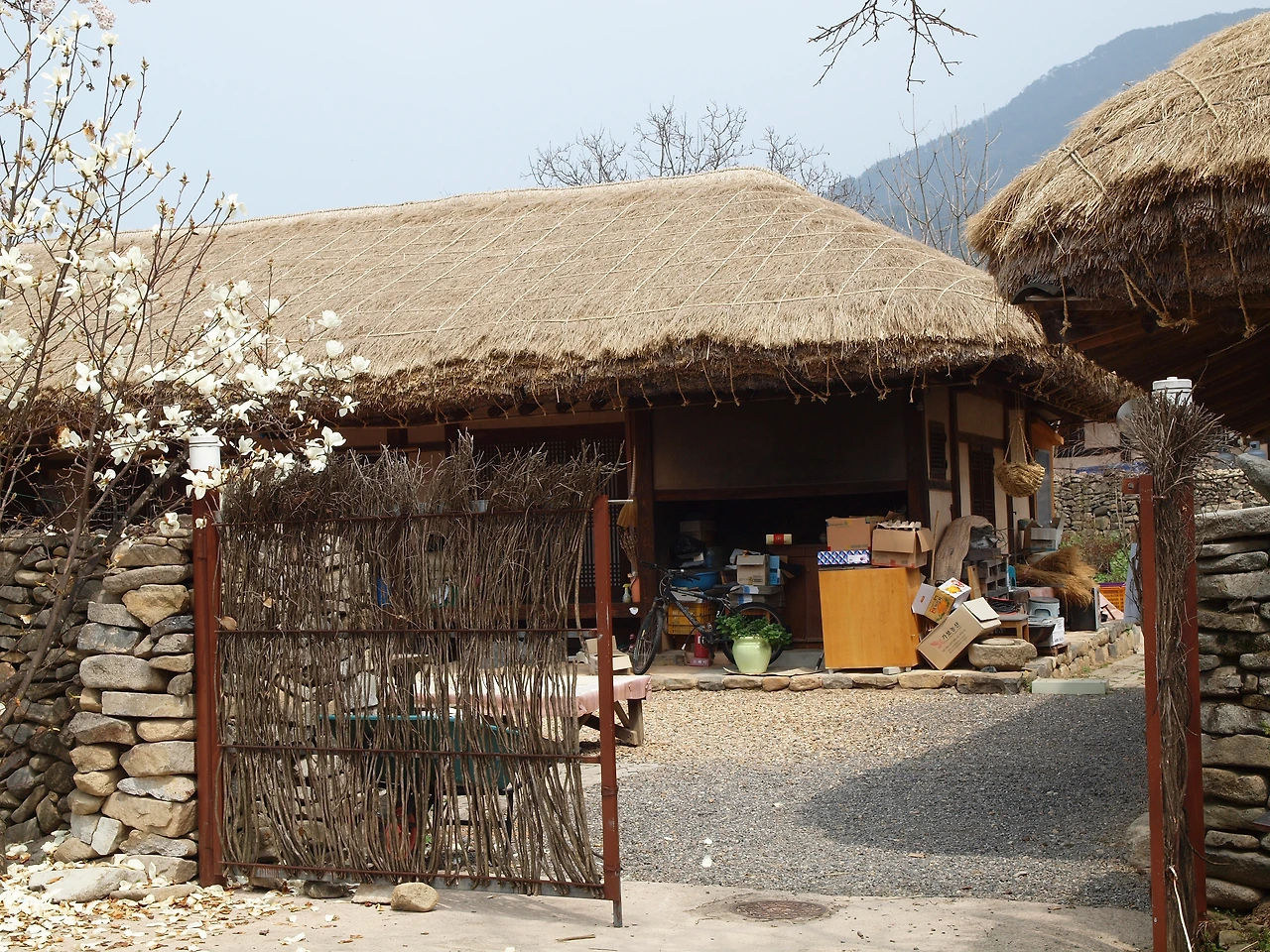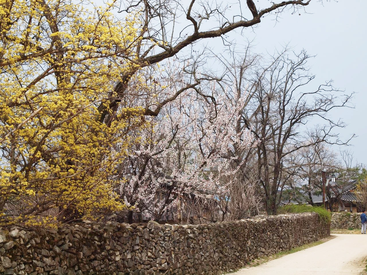 마을은 민속 마을이라 했지만 전시용이 아닌 사람들이 살고 있는 마을이었다. 그래서 집집마다에는 널따란 대문에 누구누구네 댁이라는 간판이 있었다. 어느 집 대문 안을 빼꼼히 열고 들여다보니 마루 아래에는 그 집주인의 신발이 놓여 있었다. 들어갈까 말까 망설이다 따스한 빛을 맞고 있는 신발의 여유로움을 망치고 싶지 않았다. 어느 집은 볕 좋은 마당 안에 옷이며 이불을 널어 뽀송하게 빨래들을 말리기도 했다. 그 모습을 사진으로 담으려 주인장에게 양해를 구했더니 뭐 이런 걸 찍냐고 하시며 마음대로 찍으라 하신다. 늘 보아왔던 일상이 사라지고 그것을 그리워하는 날들이 점점 더 많아지는 것 같다. 더욱이 이처럼 환하게 피어있는 꽃이 있는 계절이라면 더욱 그러할 것이다.