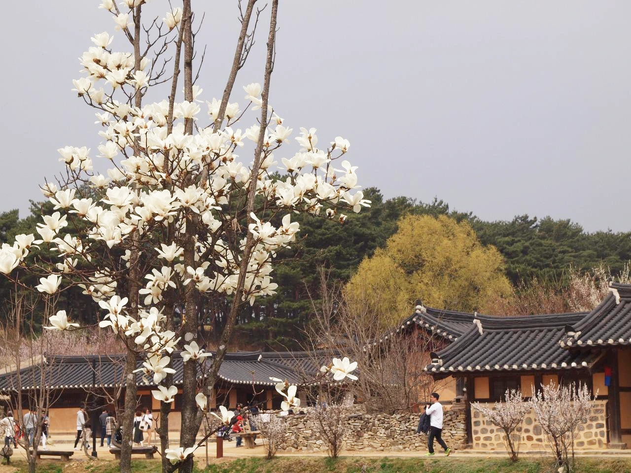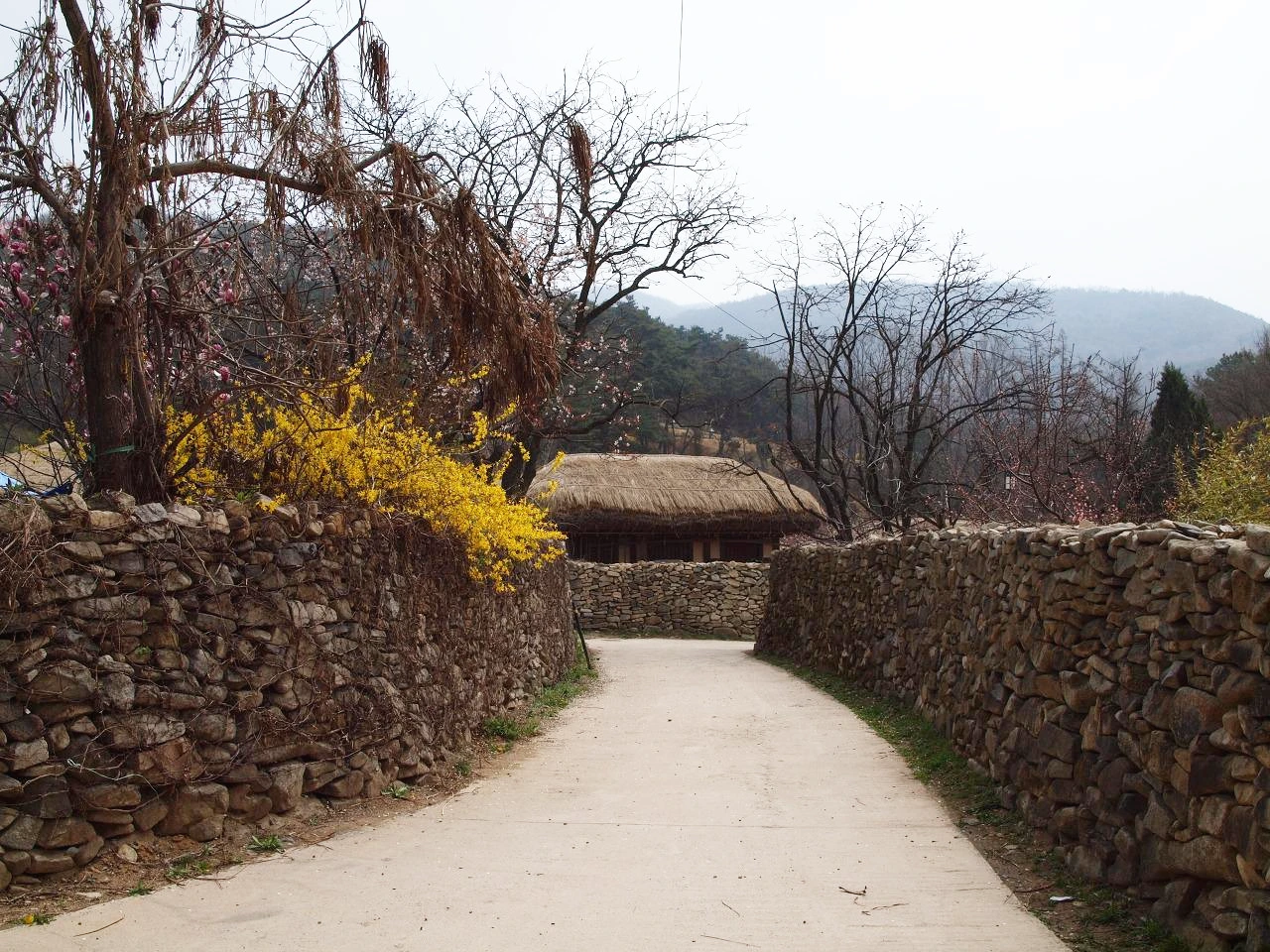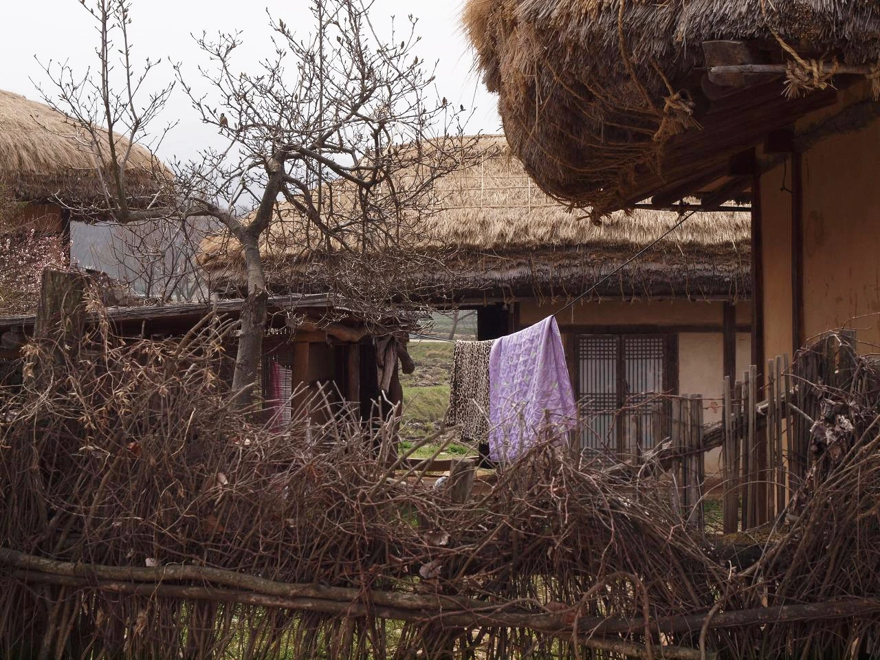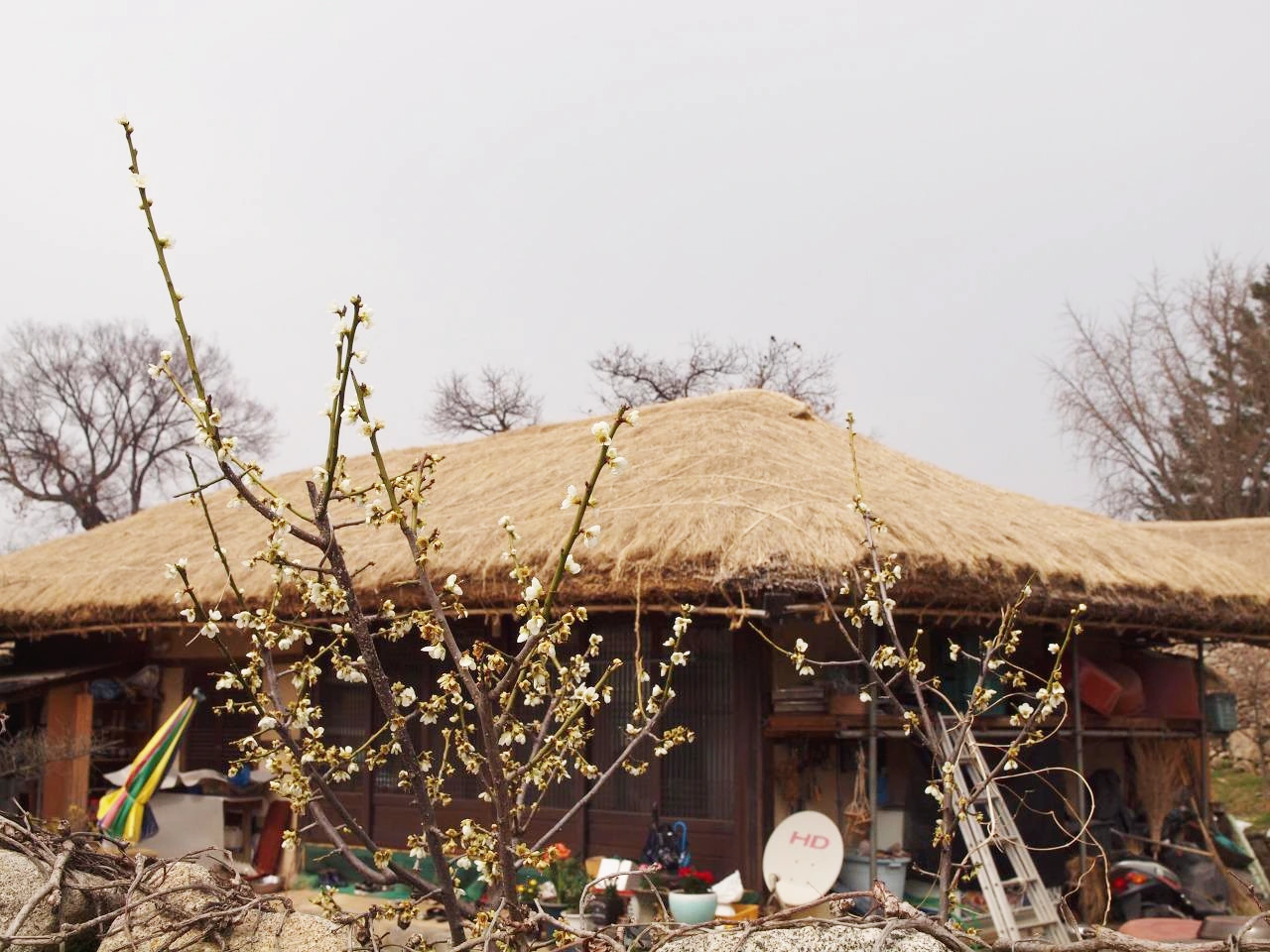 마을은 민속 마을이라 했지만 전시용이 아닌 사람들이 살고 있는 마을이었다. 그래서 집집마다에는 널따란 대문에 누구누구네 댁이라는 간판이 있었다. 어느 집 대문 안을 빼꼼히 열고 들여다보니 마루 아래에는 그 집주인의 신발이 놓여 있었다. 들어갈까 말까 망설이다 따스한 빛을 맞고 있는 신발의 여유로움을 망치고 싶지 않았다. 어느 집은 볕 좋은 마당 안에 옷이며 이불을 널어 뽀송하게 빨래들을 말리기도 했다. 그 모습을 사진으로 담으려 주인장에게 양해를 구했더니 뭐 이런 걸 찍냐고 하시며 마음대로 찍으라 하신다. 늘 보아왔던 일상이 사라지고 그것을 그리워하는 날들이 점점 더 많아지는 것 같다. 더욱이 이처럼 환하게 피어있는 꽃이 있는 계절이라면 더욱 그러할 것이다.
