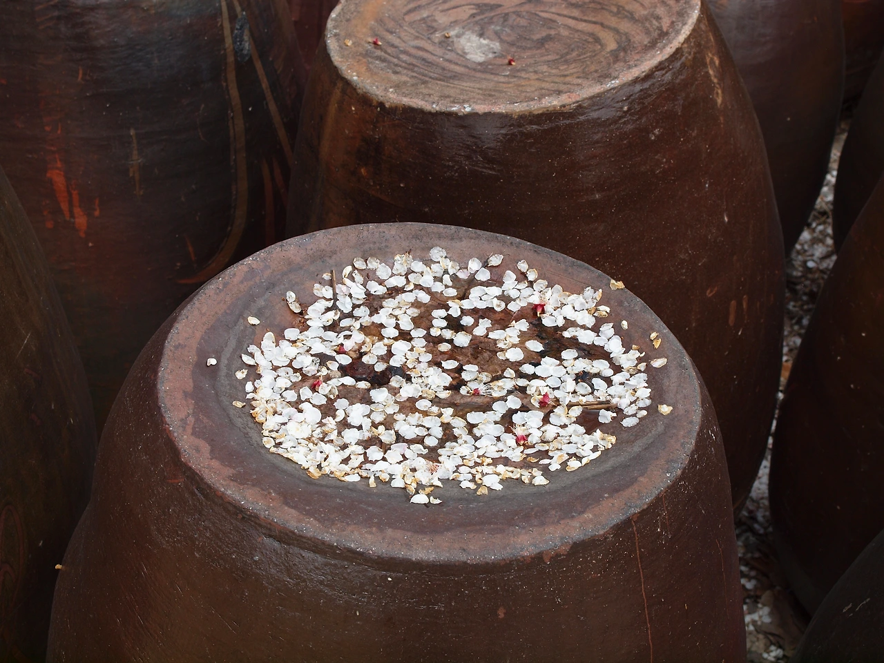 어느 집 큰댁을 지나다 보니 며칠 전 내렸던 빗물에 꽃잎을 고스란히 받아 아직 마르지 않은 채 물에 살짝 띄워 내고 있었다. 유독 하나의 독에만 남겨져 있으니 신기하기도 했지만 어쩌면 지나는 봄이 아쉬웠거나 사랑했던 사람과의 꽃날 같은 날이 그리워 유독 하나의 독에 봄이 얹어져 있을지도 모르겠다고 생각했다. 일찍 피고 지는 꽃이 있는 반면 늦게 피고 지는 꽃이 있듯 세상도 마찬가지 일 것이다. 지나간 것은 후회스럽고 아쉽기도 하지만 또 새로운 무언가를 받아들이며 결국은 그것들이 세상을 살아가게 하는 힘이 되는 것 같다. 그래서 계절이 변한다는 것은 좋은 것이다. 비록 나는 무더운 여름을 끔찍이도 싫어하지만 그 또한 맞이하여야 할 계절이고 그 계절을 지나야 또다시 아름다운 계절이 오니, 나는 봄을 보내고 새로운 계절을 맞이 해야 할 것이다.