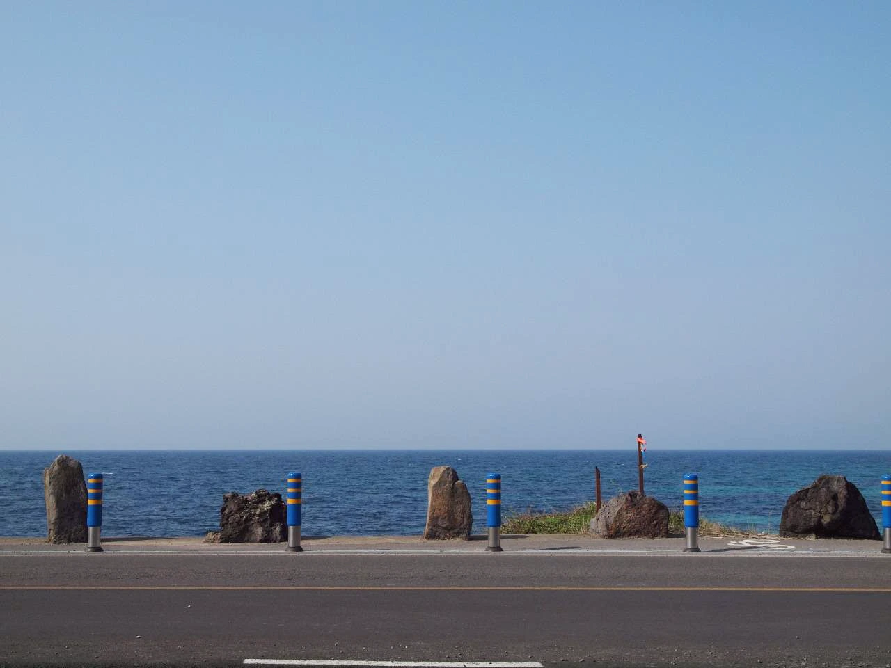 곽지 해수욕장을 지나니 산책로가 나왔다. 한담 해안 산책로이다. 산책로는 곽지에서 애월까지 이어지며 바다를 따라 끊임없이 걷는다. 아름다운 길이었고 어디에 내놓아도 멋진 길이었다. 하지만 그 멋진 길을 걷는 데 방해가 되는 복병이 있었다. 바로 배고픔이었다. 시간은 오후 1시가 넘어가고 있었고 작은 초코바 하나로는 허기진 배를 채울 수가 없었다. 언제쯤 식당이 나오려나 했지만 어느 드라마 촬영지에 있던 식당에서는 너무 많은 사람들이 붐벼 한참을 기다려야 할 것 같았다. 결국 그곳에서의 식사는 포기를 해야 했다. 산책로를 걸으며 허기짐은 여유와 집중력을 떨어 트렸다. 식당이 있는 애월까지 가야 한다는 생각에 빠른 걸음만 있었을 뿐이었다.