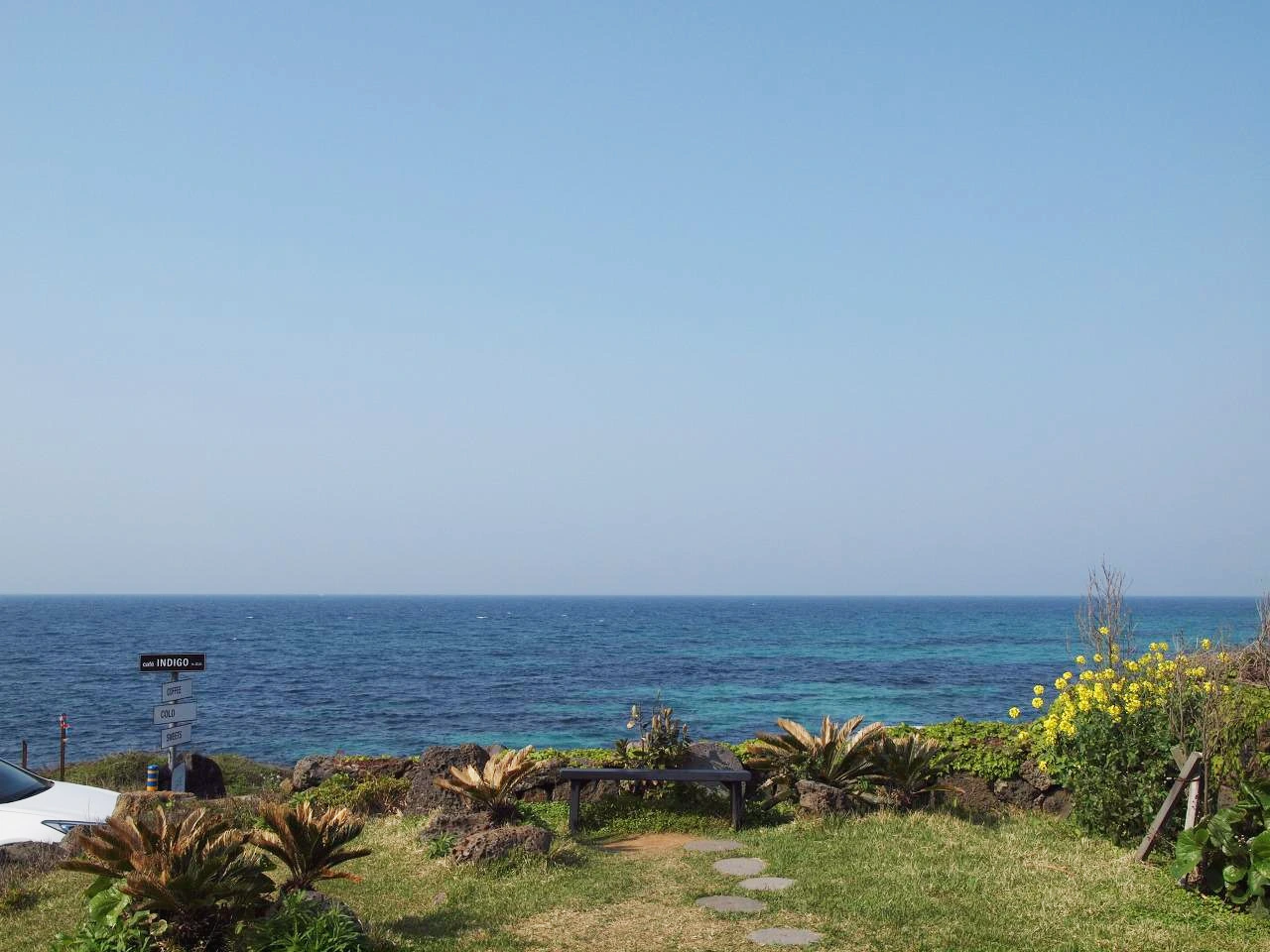 예전부터 제주에 오면 꼭 들르는 카페가 있었다. 그곳에선 길과 바다가 보였고 그래서 카페가 있는 길목에 올레길이 생겼으면 참 좋겠다고 생각했었다. 그런데 새로운 길이 생기며 정말 그 카페 앞에 올레 리본과 올레 이정표가 있었던 것이다. 근처인 것은 알았지만 정말 반가웠다.