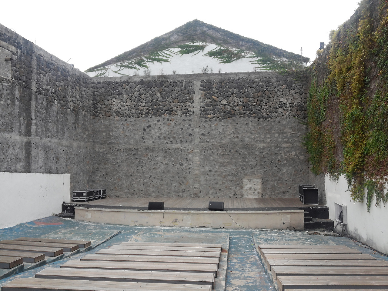 카페와 공방들을 구경하며 언덕을 올라가다 보니 오래된 건물에 6~70년대 영화 포스터가 붙어있는 ‘서귀포 관광 극장’이 보인다. 당연히 영화관일 것이라 생각하고 안으로 들어가 보니 놀랍게도 스크린이 아닌 하늘이 보이는 아담한 노천 극장이 나타난다. 나무로 된 층계형 객석과 작은 무대가 있는 공연자와 관객이 하나가 될 수 있는 공간이다.