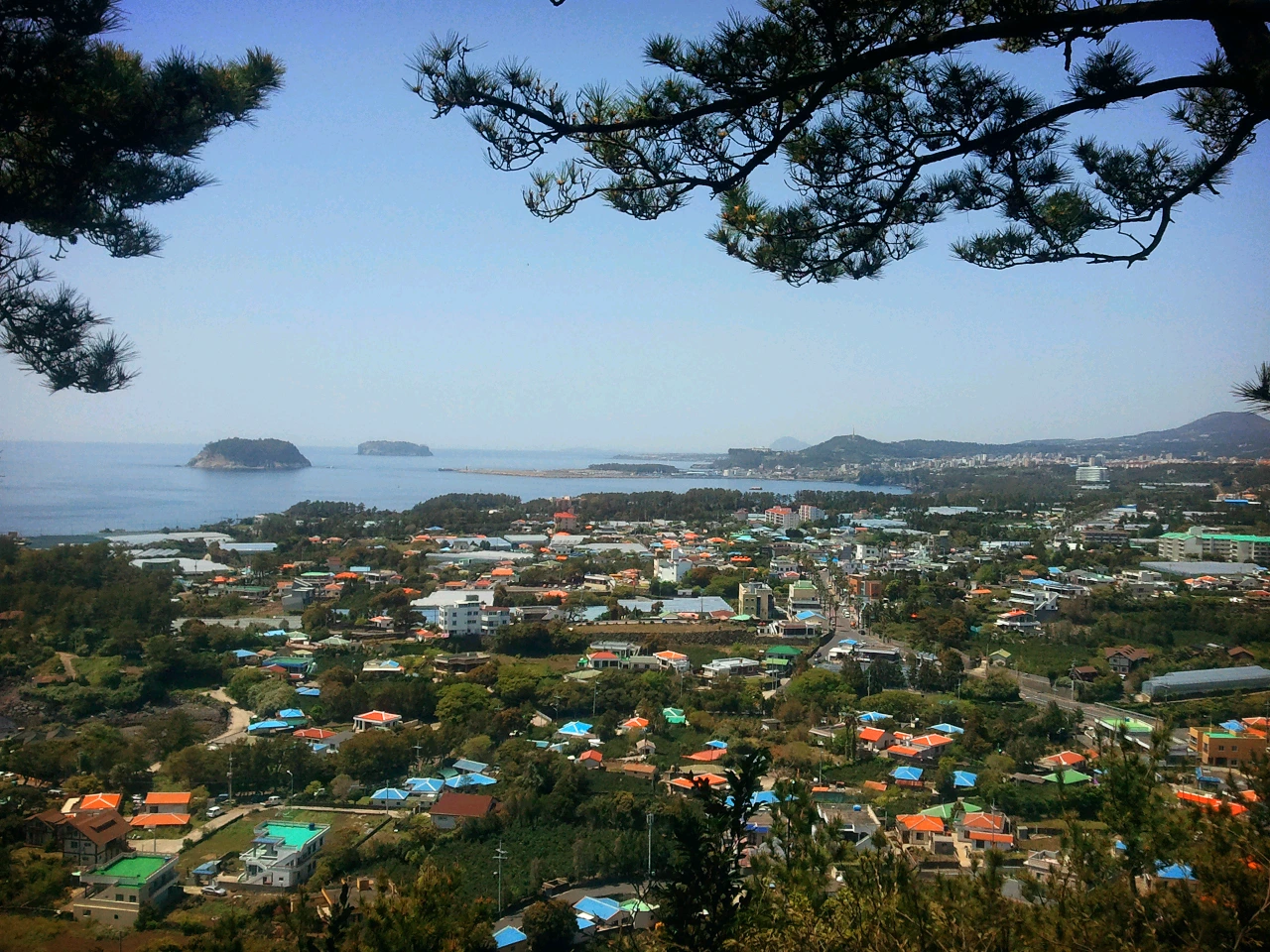이제 길은 북적북적하던 올레 시장과 한적한 서귀포 시내를 지나 칠십리 공원에 들어선다. 경남호텔이 있는 도로 건너편 쪽 공원에 서니 서귀포 항과 세연교 그리고 천지연 폭포 주차장이 보이고 바로 눈앞에 있는 것처럼 문섬이 가깝게 보인다. 상상만 하던 그림 같은 바다와 섬이 있는 풍경을 한눈에 담을 수 있어 이곳은 도심에서 볼 수 있는 내가 가장 좋아하는 장소 이기도 하다. 서귀포에서 하루를 묵을 때는 아침에 꼭 이 곳에서 산책을 하곤 한다.