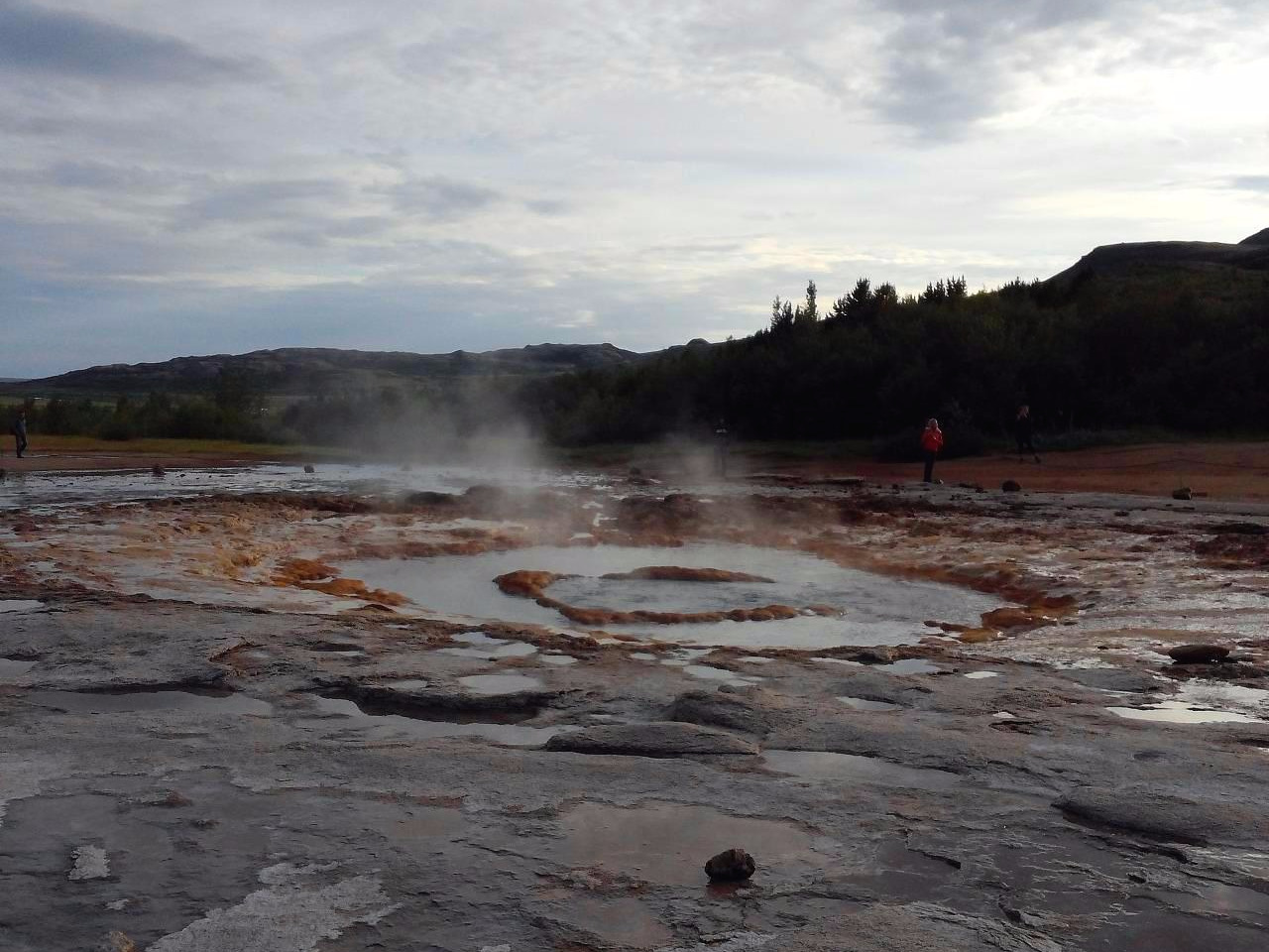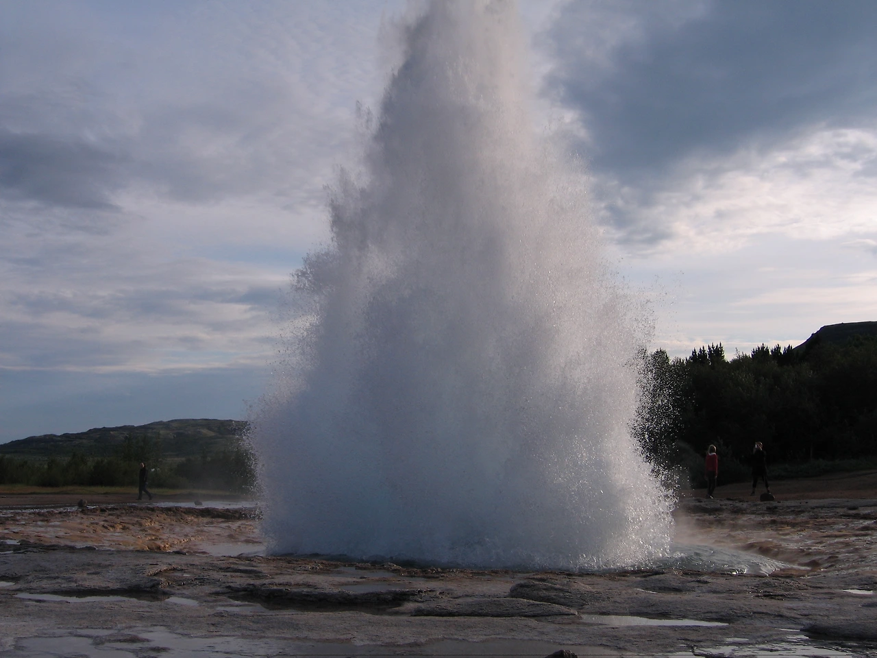 게이시르(Geysir)는 아이슬란드어로 '간헐천'이라는 의미이다. 이곳에 가면 유황냄새 진동하는 뜨거운 물이 실개천처럼 흐르고 땅 밑에서 하늘 높이 분출하는 장면을 볼 수 있다. 물은 5~6분마다 분출을 하며 높이는 15~20m로 솟아오른다. 기다림의 미학이라고나 할까? 언제 솟아오를지 몰라 물이 솟구칠 때까지 카메라를 들고 마냥 기다리는 사람들의 모습이 인상적이다. 하지만 그들의 표정은 여유롭기만 하다. 그래서인지 기다리는 시간이 지루하지 않다. 잠시 후 물은 올라올 듯 말 듯 쿨럭쿨럭 요동을 친다. 그리고는 한순간에 하늘로 솟구쳐 오른다. 가장 높이 솟구칠 때는 40m 까지도 솟아오른다고 한다. 물이 솟구치는 이유는 지하 깊은 곳의 뜨거운 물이 낮은 곳에 있는 차가운 물과 만나기 때문이란다. 인공이 아닌 자연적으로 솟구치는 물기둥을 보니 화산의 나라라는 것이 비로소 실감이 나며 요동치는 물을 보니 조금은 무섭기도 하다. 이곳에 흐르는 물은 차가운 물이 아니다. 온도가 80~100도 정도이다. 혹시나 하고 만졌다가는 큰 낭패를 볼 것이므로 주의를 해야 한다.