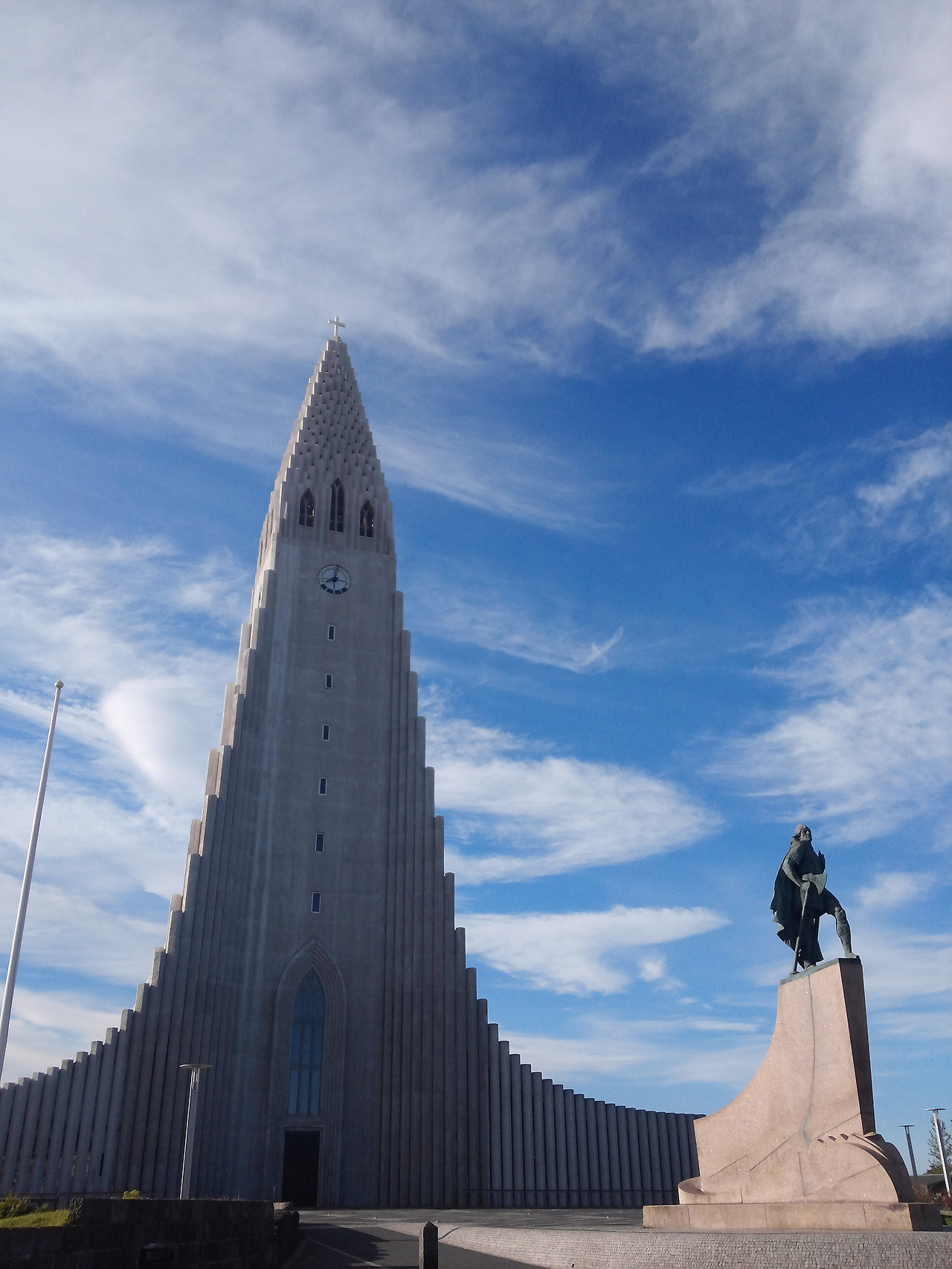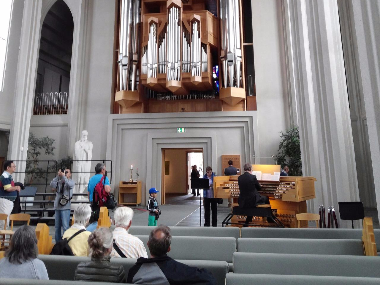 그리고 건물 앞에는 ‘레이프 에릭손’이라는 사람의 동상이 있다. 그는 아이슬란드 태생의 탐험가로서 그린란드를 처음 발견하여 '녹색의 땅'이라는 이름을 붙인 인물이다. 그리고 유럽인 최초로 콜럼버스보다 먼저 아메리카 대륙을 밟은 인물이라고 한다. 이 동상은 아이슬란드 의회 1000주년을 기념하여 미국이 선물한 것이라고 한다. 동상을 보니 바이킹 후예의 모험가 다운 강인함과 역동감이 느껴진다. 교회 안에 들어가니 아름다운 오르간 소리가 들린다. 사람들은 조심조심 걷거나 의자에 앉아 사진을 찍거나 음악을 듣고 있다. 마음이 차분해진다. 특별한 무엇은 없지만 분위기 만으로도 경건해지고 정숙해지는 것 같다.