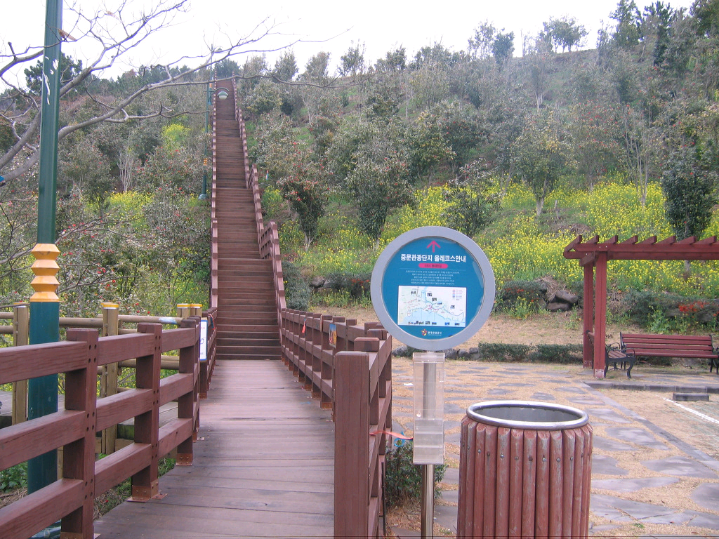 정상에서 한숨을 돌린 후 다시 길을 걸으며 작은 사찰도 지나고 중문천도 지난다. 중문천의 물은 상류의 천제연 폭포에서 떨어지는 물이 흐르고 중문천 주변은 공원처럼 조성이 되어 있어 산책하기가 좋게 되어 있다. 올레길을 걷다 이렇게 잘 꾸며진 제주의 공원들을 자주 볼 수 있는데 그럴 때는 이곳에 사는 사람들이 마냥 부럽기만 하다.