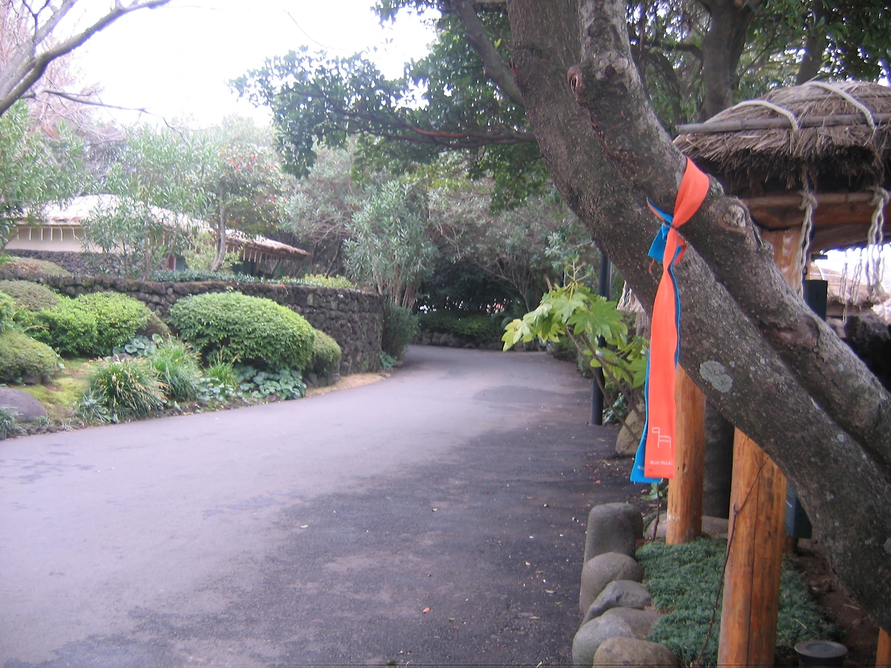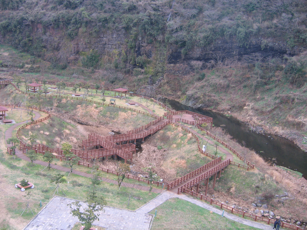 갯깍 주상절리대 낙석의 위험으로 길이 통제가 되고 제주올레에서는 새로운 길을 내었다. 중문 관광단지를 통과하여 예례 생태공원을 지나 본래의 길인 논짓물로 길은 이어진다. 이 길은 내가 마지막으로 8코스를 찾아왔을 때 걸었던 길임에도 예전의 길을 걷지 못하는 것이 아쉬워서 그런지 중문 관광단지를 걷는 길이 조금은 지루하게 느껴진다. 더욱이 주변을 찍었던 사진도 거의 없다. 깨끗하고 반듯하게 잘 정돈된 관광단지의 길이지만 왠지 정감은 가지 않는다. 여미지 식물원을 지나고 중문 관광단지 교차로에서 길은 예례동 방향으로 이어지며 아스팔트 길을 걷는다. 한참을 걷다 보니 지루했던 올레꾼의 마음을 달래 주기라도 하듯 물과 초록이 있는 널따란 공원이 나온다. 조성된지 얼마 되지 않은 듯 군데군데 공사했던 흔적들이 있지만 중앙을 흐르는 대왕수천을 따라 아름답게 조성된 공원은 인위적임에도 불구하고 주변의 상쾌한 공기와 분위기는 다른 도시의 공원과는 많이 다른 느낌이다. 중국 관광객들이 제주를 방문하는 이유중 첫 번째가 깨끗한 공기 때문이라고 하던데 그런 이유를 충분히 대변하는 공원이다.