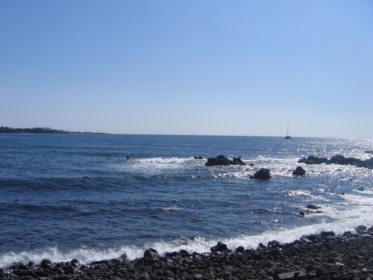 대포포구의 고즈넉함을 뒤로 하고 중문 축구단지를 지나니 멀리 바다 위로 여유롭게 요트가 떠 가고 있다. 반짝반짝 햇빛을 머금은 너른 바다가 마음을 설레게 한다. 물 위로 반짝이는 햇빛이 없었다면 어디가 바다이고 어디가 하늘인지 구분을 못했을 것이다. 어딘가에서 보았던 외국의 유명한 풍경이 부럽지 않은 너무나 매력적인 풍경이다. 누군가에게 자랑하고 싶은데 어디 이 풍경을 말로 표현할 수 있을까? 그저 사진 속에 그 풍경을 담을 뿐이다.