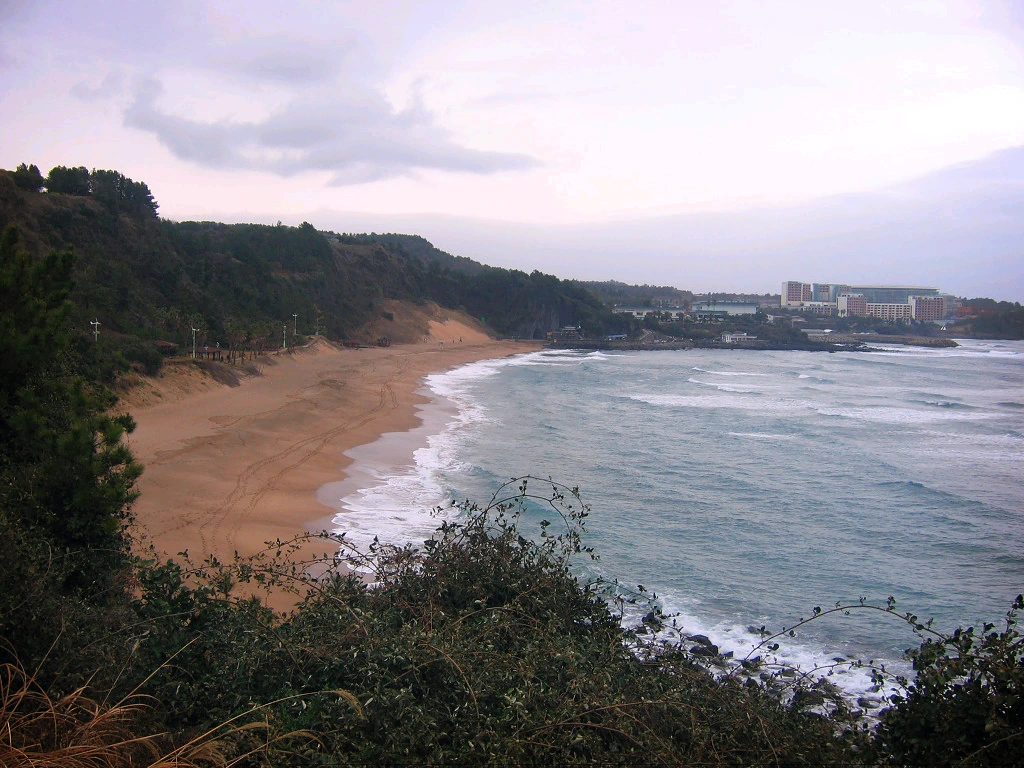 중문은 우리나라에서 내로라하는 고급 호텔들이 즐비한 숙박시설이 많은 곳이다. 예전 올레길을 알기 전 '쉬리의 언덕'에서 바라보았던 중문 색달해변은 정말 아름답다고 생각했었다. 그러나 그 해변을 걸어 보겠다는 생각은 하지 않았던 것 같다. 하지만 오늘은 멀리 쉬리의 언덕을 보며 아름다운 해변을 걷는다. 앞서 걸었던 누군가의 발자국도 있고 지금 걷고 있는 나의 발자국도 해변을 따라 남아 있다. 밀려오는 파도가 그 자국들을 지우려 하지만 올레꾼의 아쉬운 마음을 아는 듯 급하지 않게 여운을 남기며 조금씩 조금씩 지우고 있다.