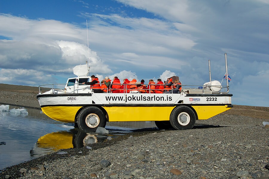 이곳에서는 바퀴가 달린 수륙 양용 배를 타고 호수를 크루징 할 수 있다. 안타깝게도 호수에 도착하니 안개가 너무 자욱하여 크루징은 포기를 한다. 아쉬운 마음에 빙하가 떠 있는 호수만 바라본다.