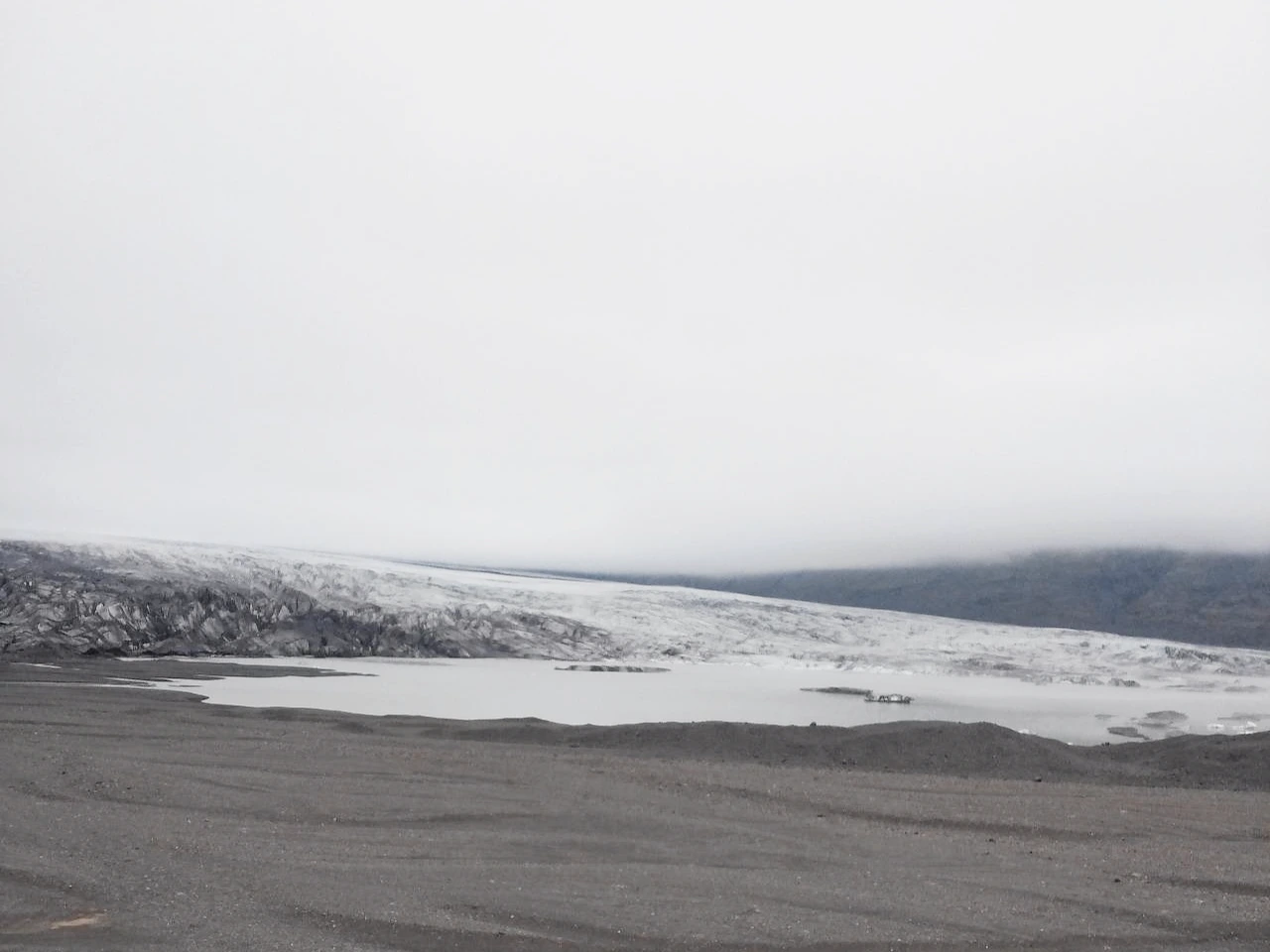 공원 입구에서 20분 정도 걸어 들어가니 작은 언덕들이 나오고 멀리 산처럼 거대한 빙하가 보인다. 처음에는 그냥 높은 언덕처럼 보여 실감이 나지 않았다. 하지만 자세히 보니 푸르스름한 듯한 하얀색과 몇 년 전 크게 분출되었던 화산 때문에 재가 쌓여 잿빛의 색이 섞여있는 빙하를 보니 경이롭게 느껴진다. 조금은 두려운 생각이 들며 문득 홀로 저곳에 뚝 떨어져 있는 태초 인간의 모습에 나를 대입해 보니 거대한 빙하가 무섭게 느껴진다.
