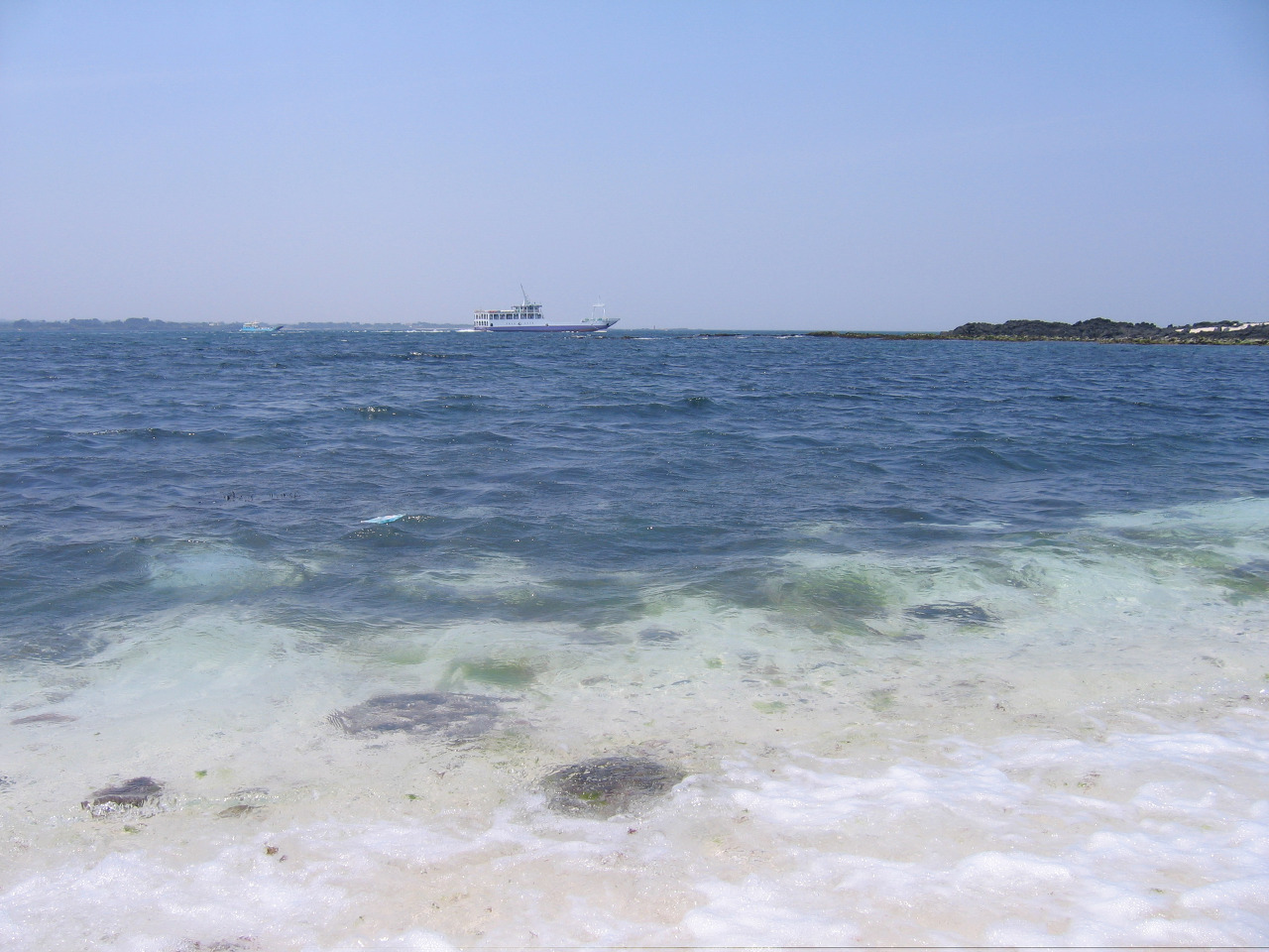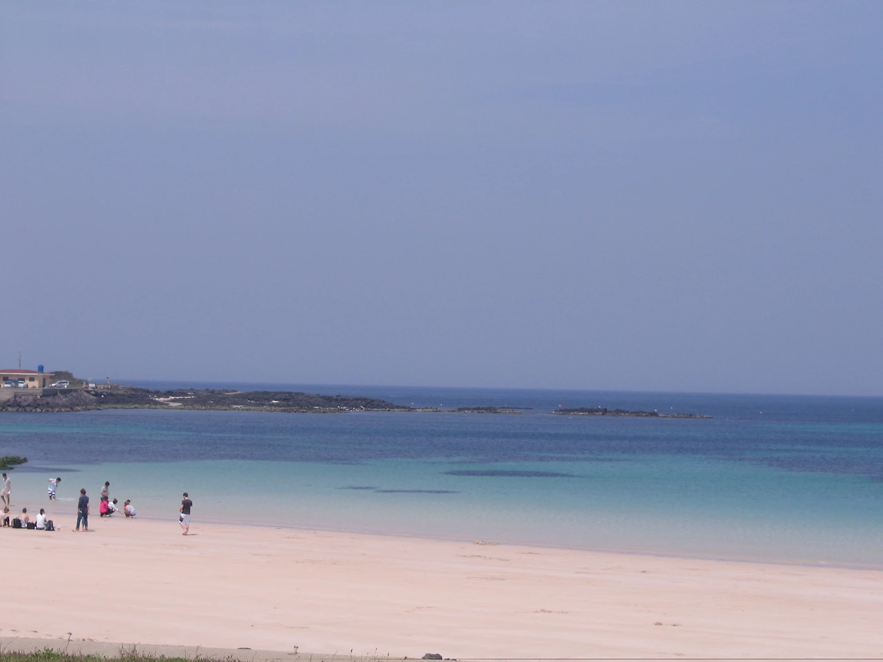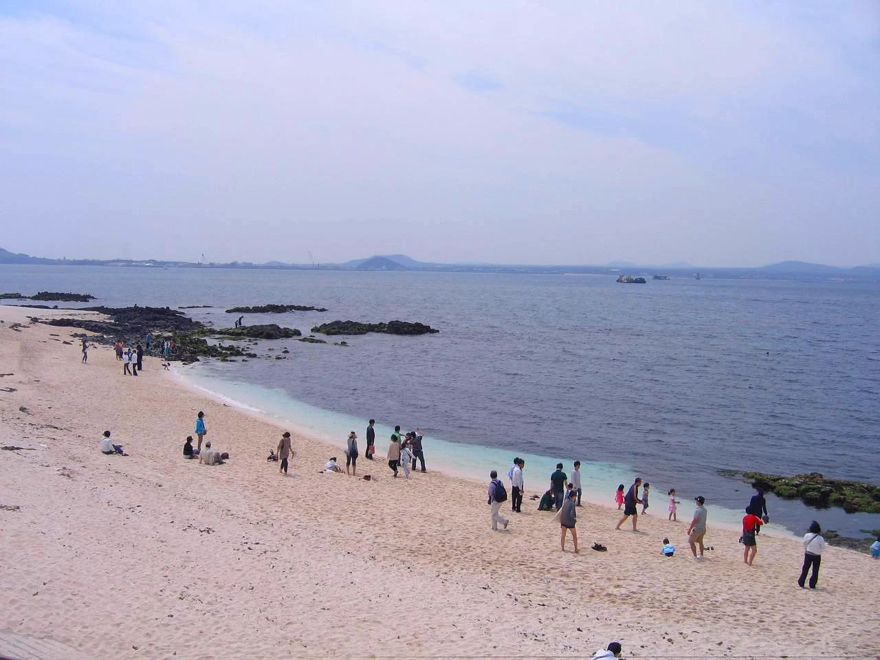 해변에 서서 바라보니 멀리 하우목동항으로 가는 배가 보이고 그 너머에는 지미봉과 종달항이 보인다. 바다색은 어김없이 여느 제주 바다처럼 에메랄드 옥빛으로 출렁이고 하얀 모래와 밀려오는 파도는 그 안까지 투명하게 자기 모습을 보여 주고 있다. 제주에서는 흔하지만 육지에서는 결코 볼 수 없는 풍경이다. 사람들은 해변에서 저마다의 표정으로 사진을 찍으며 소중한 추억들을 담고 있고 어떤 이는 먼 바다를 바라보며 생각에 잠겨 있다.