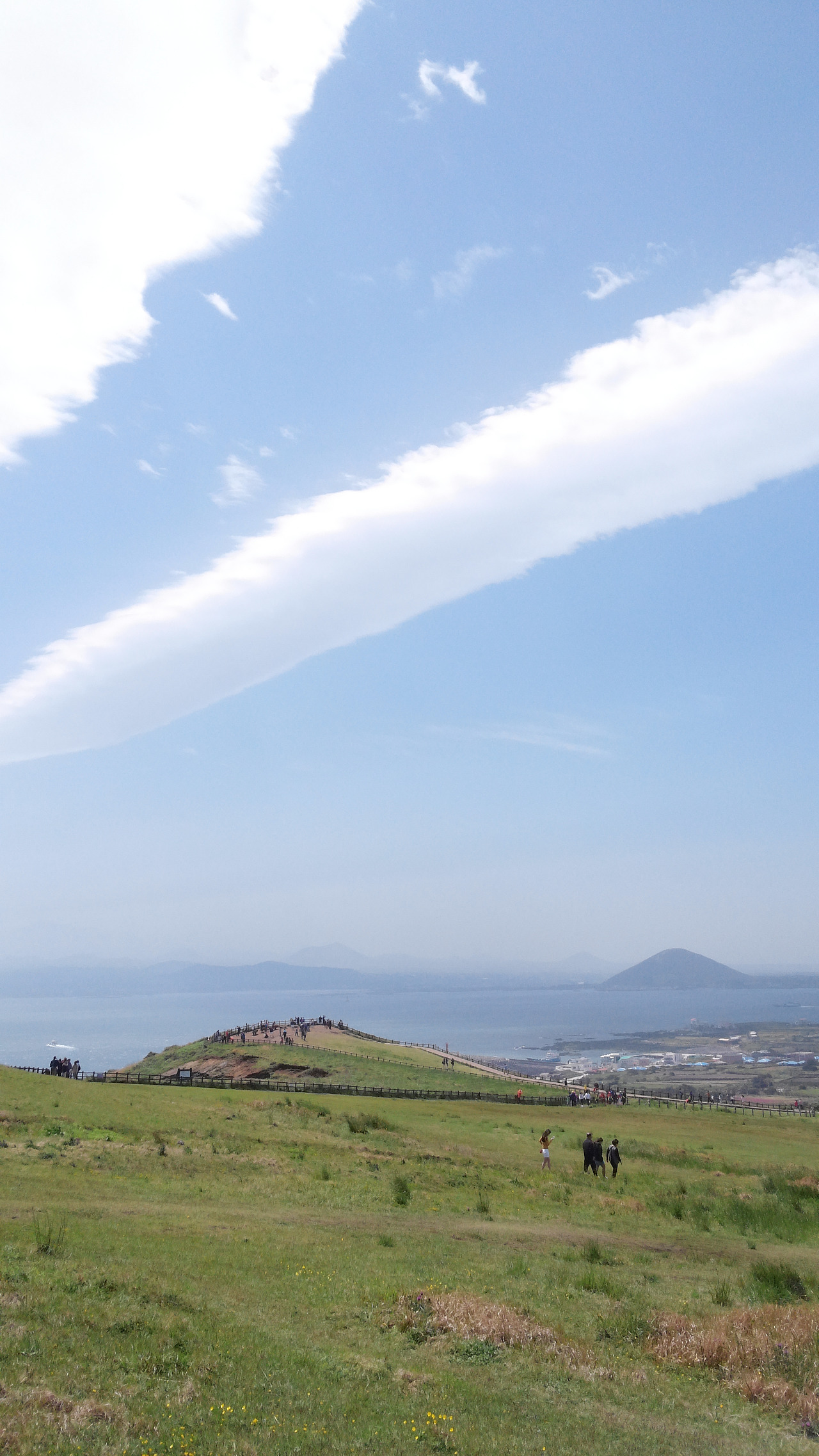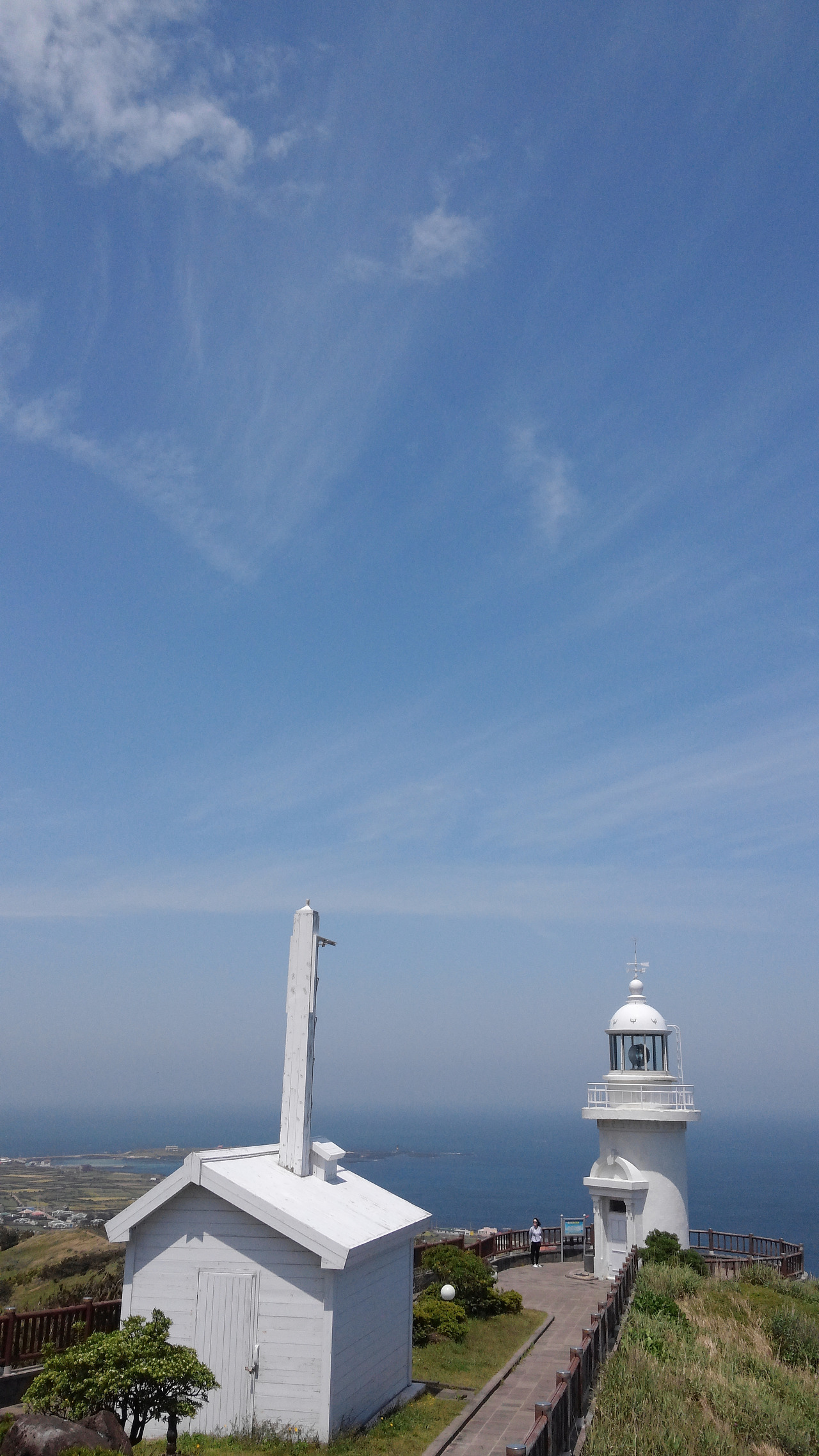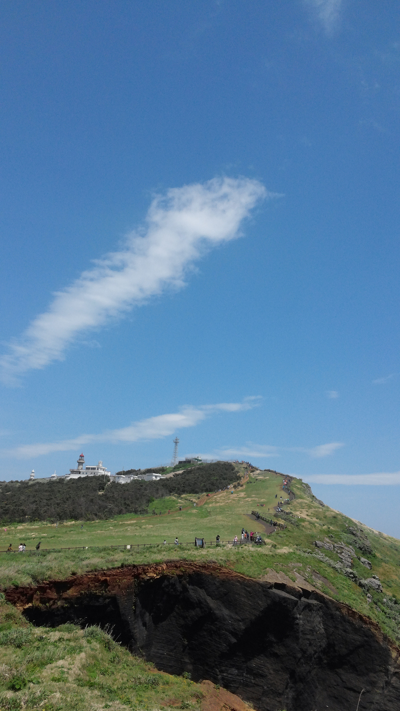 숨가뿜도 잠시. 우도봉 정상에 올랐다. 파란 하늘과 그 하늘을 장식하고 있는 구름들. 어디가 하늘이고 어디가 바다인지 모를 수평선. 목적을 잃어버려 두렵기만 한 암흑 속에서 환한 불빛을 비추어 방황하던 배를 인도해 주는 하얀 등대. 이 모든 풍경을 보니 가슴이 트이며 마음속까지 시원해진다. 정상에 힘들게 오른 사람들 모두가 한참이나 멀리 바다를 바라보고 있다. 그들은 모두 무슨 생각을 하고 있을까? 마음까지 시원 해지는 가슴 트이는 풍경의 넓이 만큼 행복을 남기고 이곳에 있는 사람들의 걱정들이 모두 바람에 실어 저 넓은 바다로 날아갔으면 좋겠다.