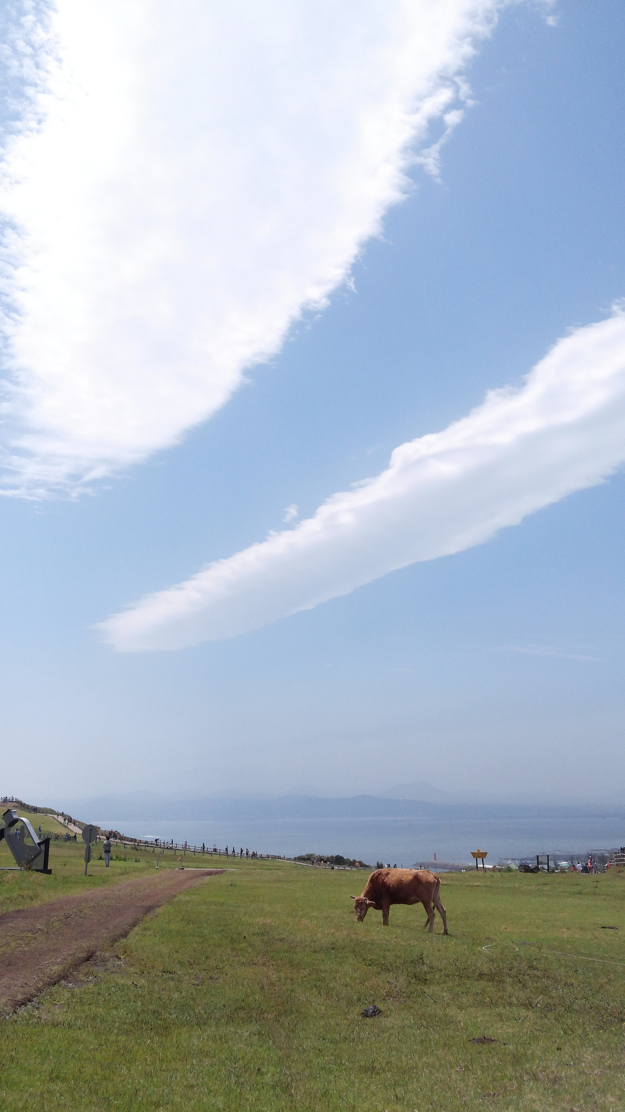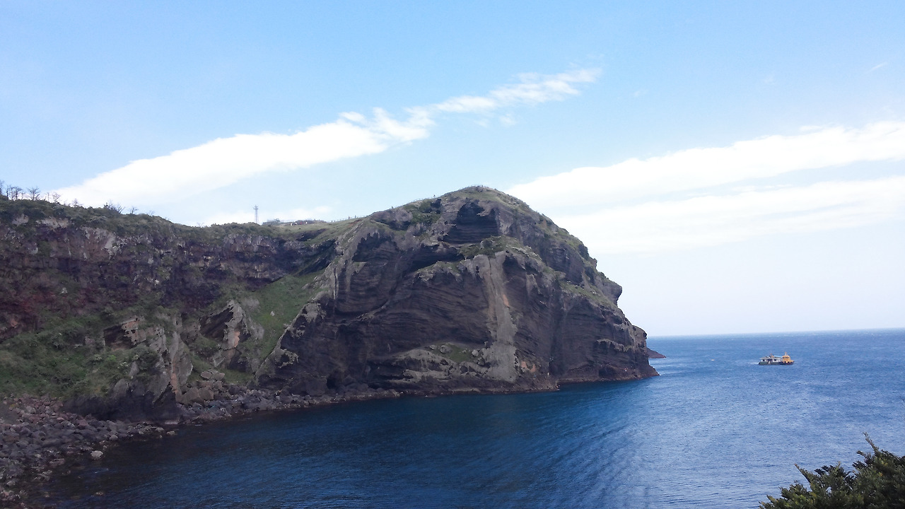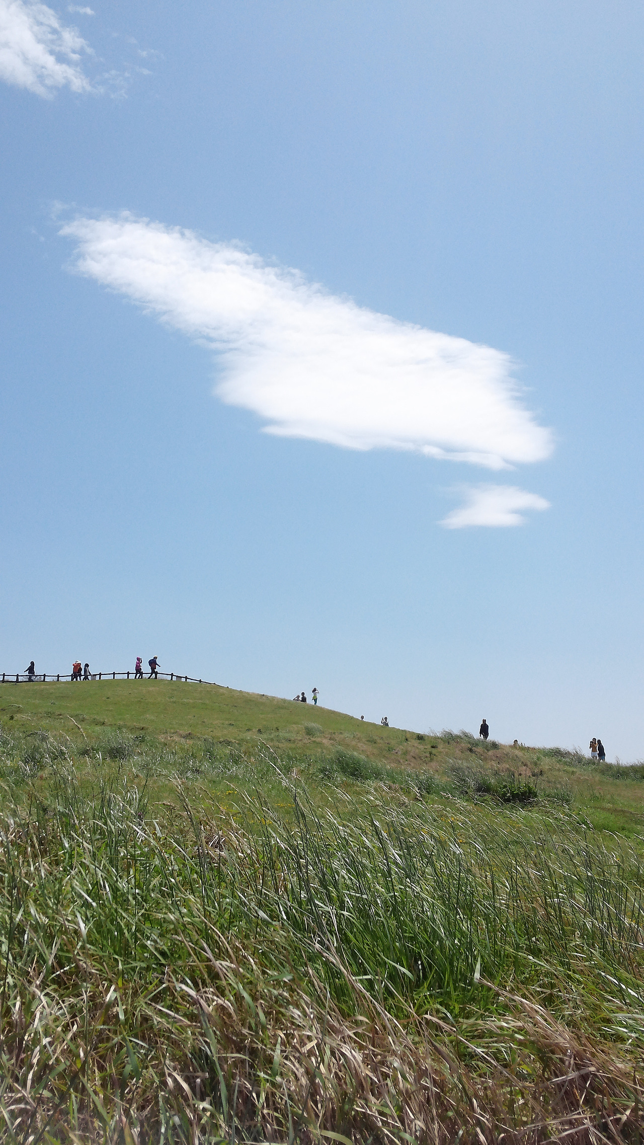 숨가뿜도 잠시. 우도봉 정상에 올랐다. 파란 하늘과 그 하늘을 장식하고 있는 구름들. 어디가 하늘이고 어디가 바다인지 모를 수평선. 목적을 잃어버려 두렵기만 한 암흑 속에서 환한 불빛을 비추어 방황하던 배를 인도해 주는 하얀 등대. 이 모든 풍경을 보니 가슴이 트이며 마음속까지 시원해진다. 정상에 힘들게 오른 사람들 모두가 한참이나 멀리 바다를 바라보고 있다. 그들은 모두 무슨 생각을 하고 있을까? 마음까지 시원 해지는 가슴 트이는 풍경의 넓이 만큼 행복을 남기고 이곳에 있는 사람들의 걱정들이 모두 바람에 실어 저 넓은 바다로 날아갔으면 좋겠다.