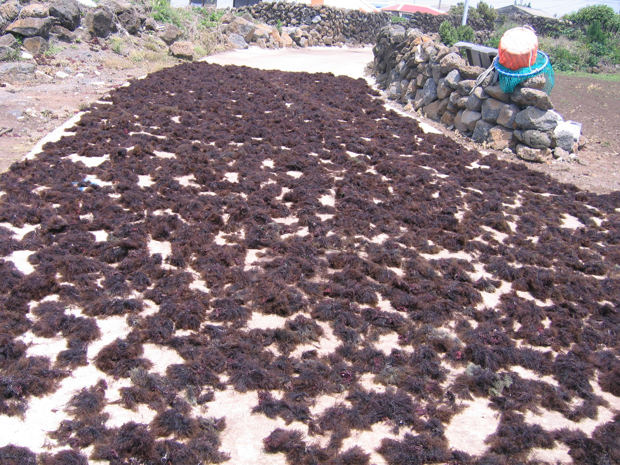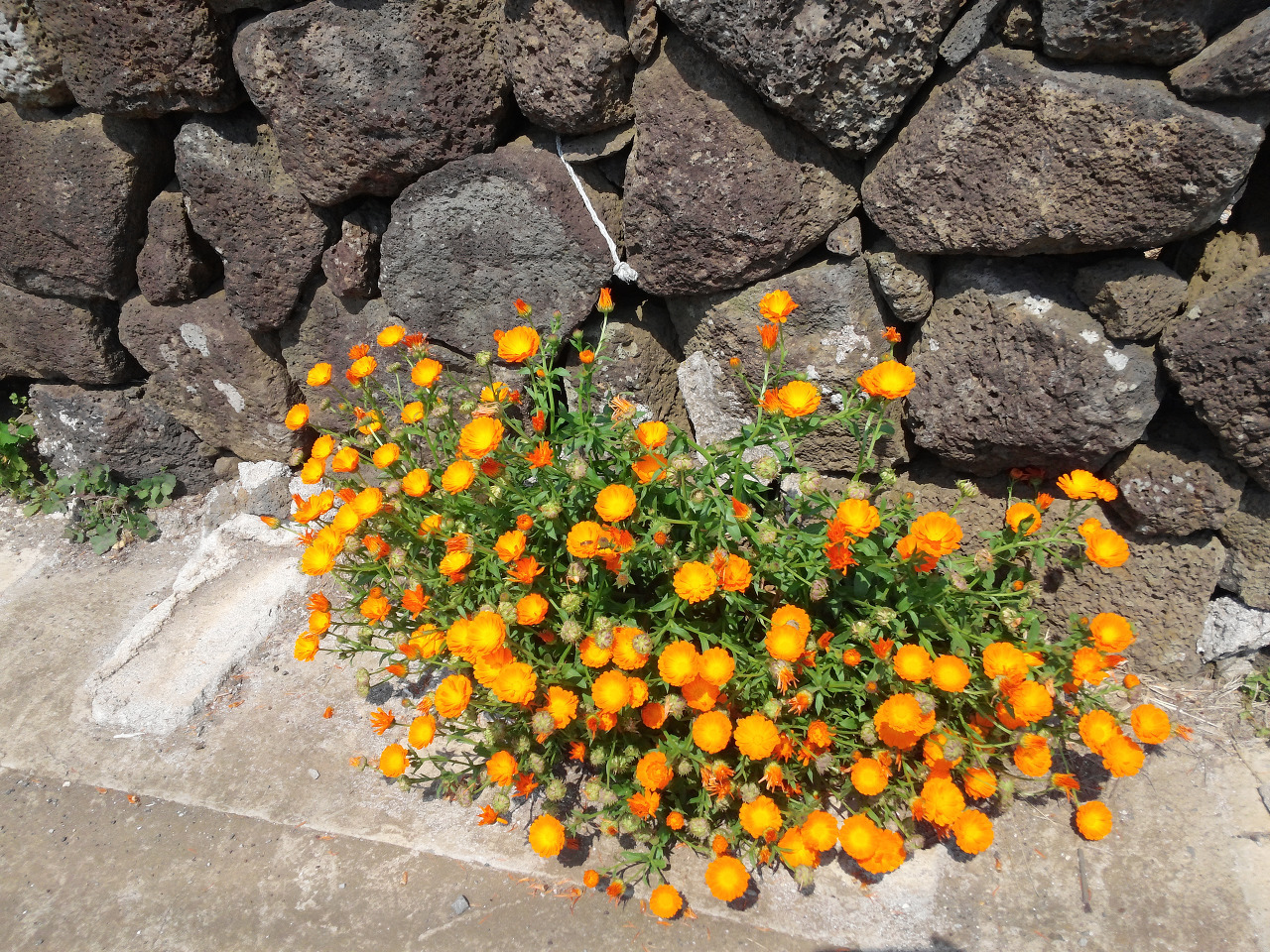 지나가는 올레꾼의 시선을 끌고 싶은 듯 색을 선명하게 드러내며 돌담 밑에 꽃이 피어 있다. 알록달록 핀 꽃들은 제가 제일 이쁘다며 날 좀 바라보아 달라는 듯 산들산들 부는 바람에 살살 제 꽃잎을 날리고, 돌담 사이로 보이는 초록색, 파란색 지붕들은 봄 채비를 마친 듯 그 색이 더욱 선명해 보인다. 어느 해녀 할머니가 정성스레 널어놓은 우뭇가사리는 지나가는 올레꾼의 발걸음을 조심스럽게 하고 살짝살짝 피해 가며 폴짝폴짝 발걸음을 디디게 해주는 재미를 준다.