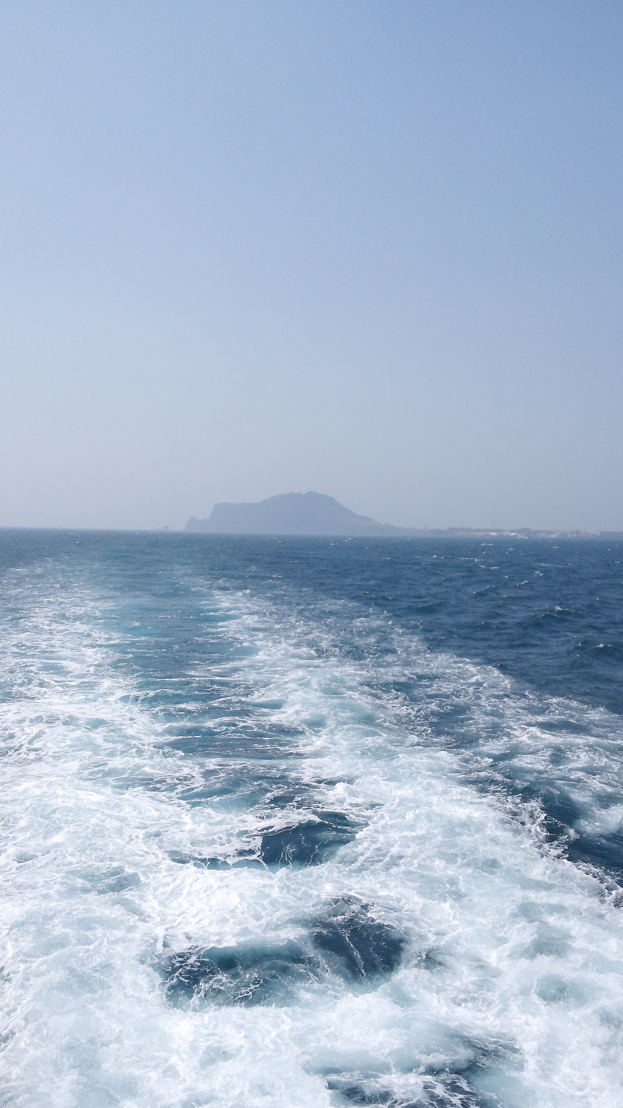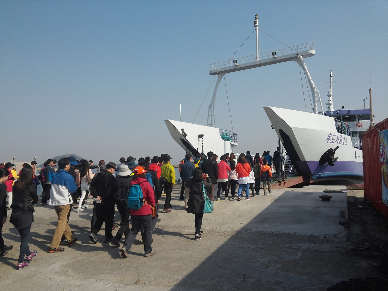 그중 1-1 코스는 제주의 대표 관광지인 섬 속의 섬인 우도를 걷는 코스이다. 우도로 가는 배가 있는 성산항에 도착하니 이른 아침이지만 벌써 많은 사람들이 승선표를 끊고 선착장에서 줄을 지어 서있다. 우도까지는 10분 남짓되는 짧은 거리지만 배는 바다를 가르는 하얀 물줄기를 만들며 달리고 사람들은 기대감과 설렘으로 가득한 모습들이다. 배가 달릴수록 성산은 점점 멀어지고 작게 보이던 우도의 집들은 점점 크게 보이며 여행객들을 맞아주고 있다.