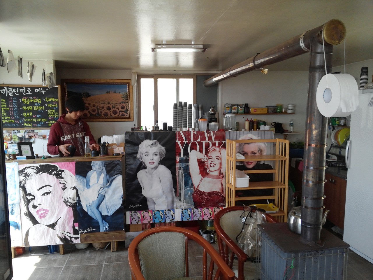 점점 따사로와지는 봄 햇살을 받으며 터벅터벅 걷다 보니 멀리 하고수동 해수욕장이 보인다. 해변 길가에는 전기자동차, 승용차, 스쿠터들이 보이고 사람들은 함께 온 가족, 연인, 친구들과 사진을 찍으며 해변의 여유를 즐기고 있다. 그리고 길가에는 만인의 연인 이었던 영화 속 마를린 먼로의 활짝 웃는 그림이 그려져 있는 작은 카페가 보인다. 카페 안에 들어가 시원한 커피를 주문하고 창가에 앉아 조용히 흘러나오는 음악을 듣는다. 커피와 봄 햇살의 따스함과 함께하는 음악. 두고두고 기억에 남을 여유와 풍경이다.