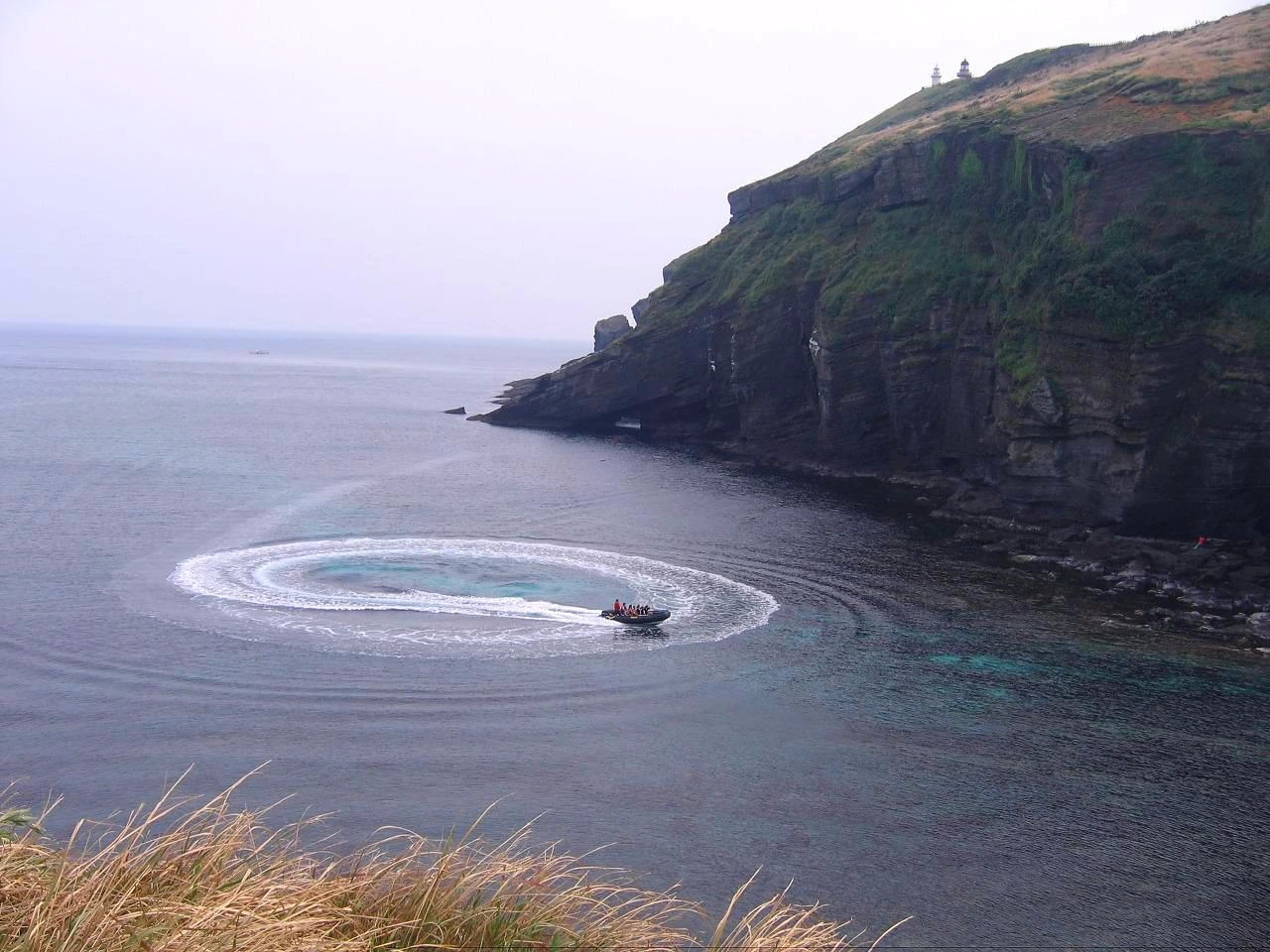 한적한 마을길을 나오니 우도봉이 더욱 가깝게 보이고 어디선가 사람들의 함성 소리가 들려온다. 고래가 살았다는 동굴이 있는 검은 모래의 '검멀레 해변' 앞바다에서는 짓 푸른 바다를 가르며 보트가 하얀 물보라와 함께 멋진 무늬를 만들고 있다. 옥색의 바다 위에 새겨지는 선명한 무늬와 하늘에 떠 있는 구름의 조화가 이 길의 매력을 더해주고 있다.