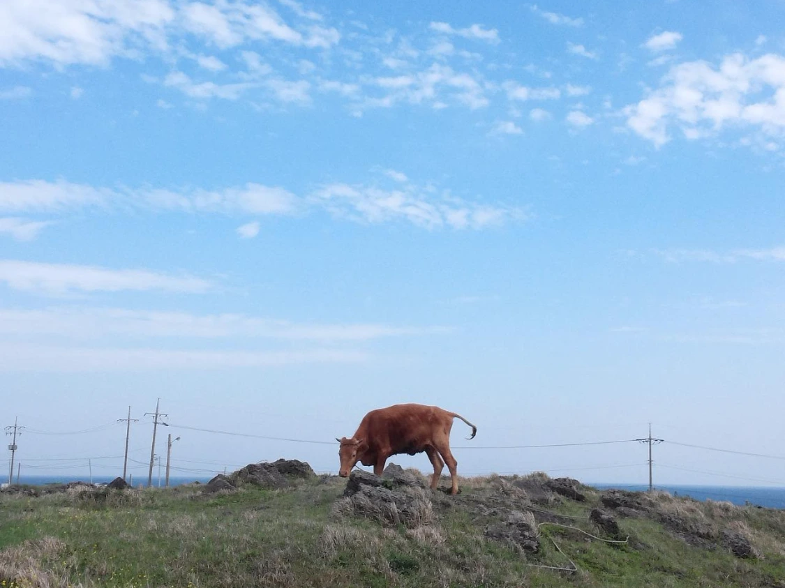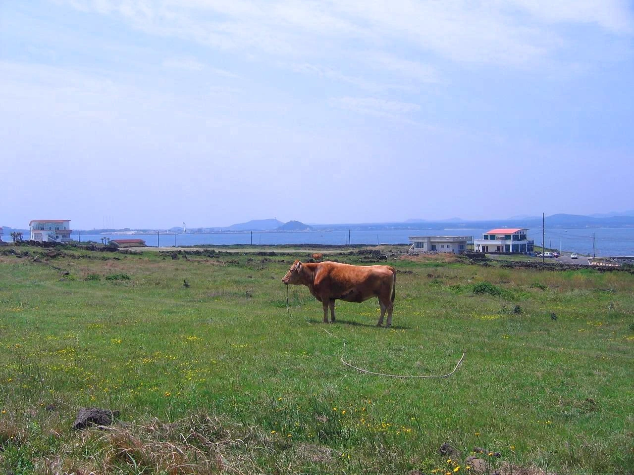 한가로이 풀을 뜯고 있는 소는 푸른 풀밭과 너른 바다를 보며 커서 인지 이 곳의 터줏대감 마냥 여유가 넘쳐 보인다. 녀석에게 다가가며 올레꾼 좀 봐 달라며 주의를 끌어 보지만 눈만 꿈벅꿈벅하며 되새김질만 할 뿐 나에겐 도통 관심이 없는 듯하다. 모든 것이 평화롭고 한가로운 섬의 풍경이다.