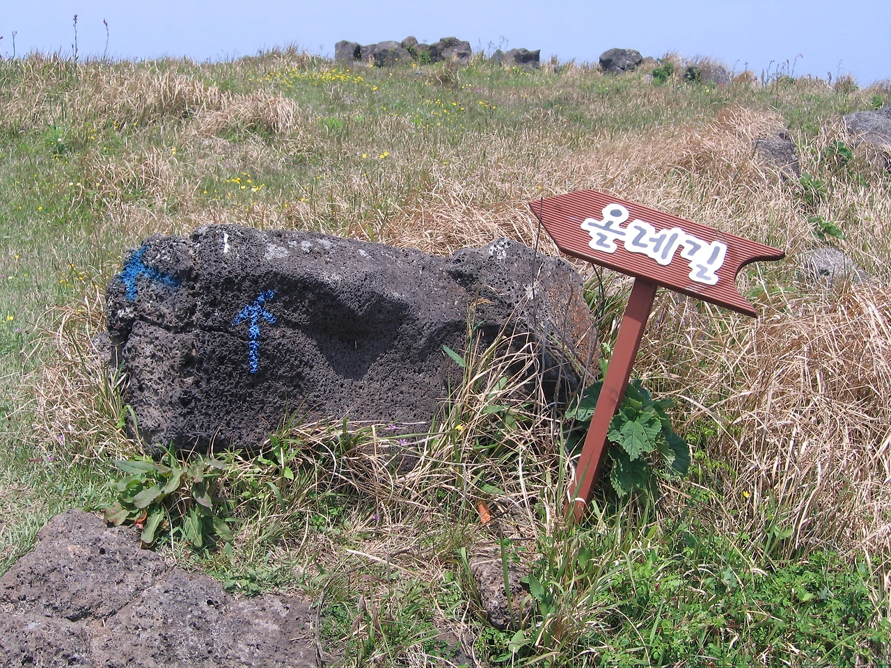 배에서 내린 사람들은 스쿠터와 전기 자동차, 바이크를 타고 순식간에 사라지고, 이제 올레꾼도 길을 시작한다. 잠시 시멘트 길로 걷던 길은 도로를 벗어나 섬 안쪽으로 이어지고 바다 쪽을 바라보니 멀리 섬 밖 오름들의 능선이 보인다. 작은 언덕에는 계절의 전령사인 봄 들꽃들이 샛 노란색을 뽐내며 활짝 피어있고 추운 겨울을 이겨내고 나오는 파릇한 풀 속에 있는 올레길 팻말은 오늘 내가 가야 할 이정표가 되어준다.