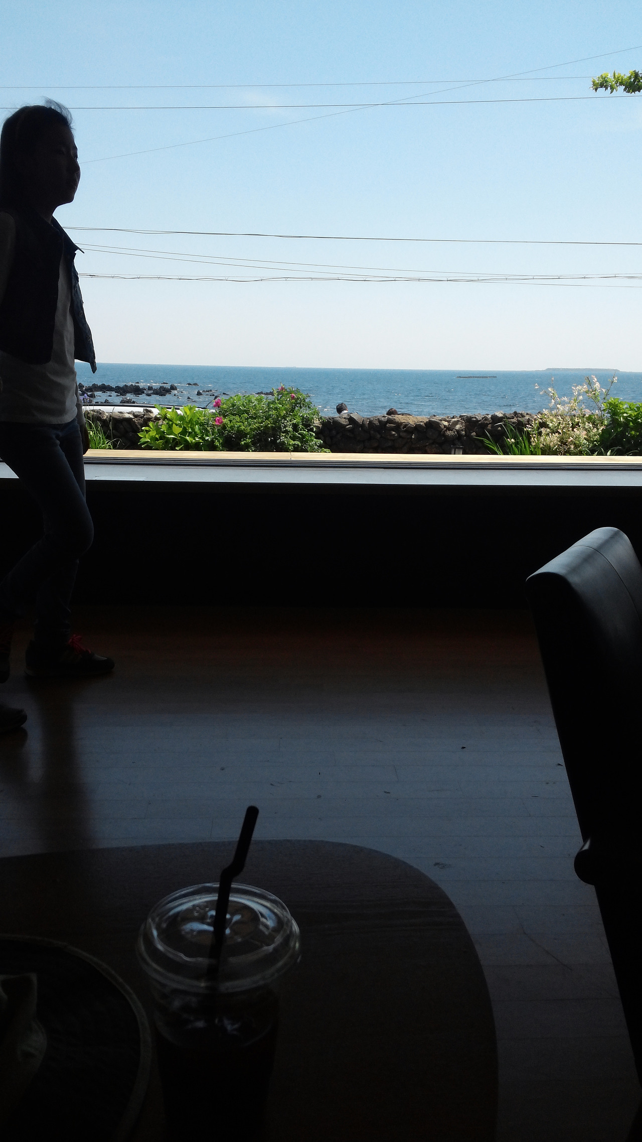 잠시 차 한잔을 주문하고 창문 너머 바다를 바라본다.