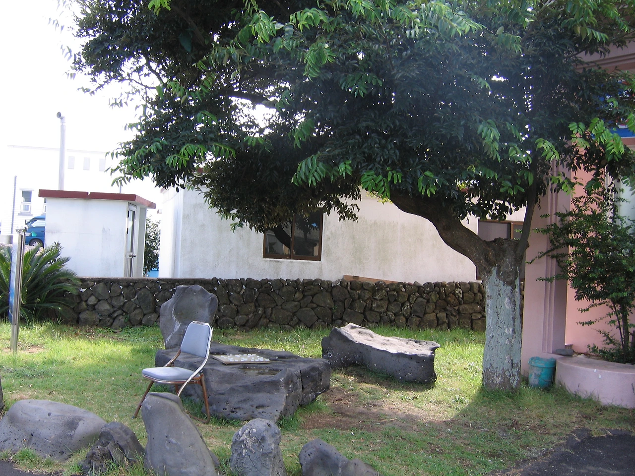 올레 5코스에도 신례리의 공천포에 쉼터가 있다. 마을 주민들이 마을회관에 자리를 만들어 제공하고 있으며 커피, 물, 화장실 등을 이용할 수 있다. 쉼터 밖에도 쉬어갈 수 있는 커다란 나무가 있고 그 아래 시원한 그늘에는 올레꾼을 위한 자리도 마련되어 있다. 나무 그늘 밑 쉼터에 앉으니 검은 모래가 깔려 있는 해변 너머로 바다가 보이고 하늘에는 올레꾼을 따라 쉬어 가듯 하얀 구름이 뭉게뭉게 피어 있다. 방금 전까지 누군가 장기를 두고 있었는지 널따란 돌 위에 장기판이 놓여 있다. 마을을 지나는 이름 모를 누군가를 위해 인심 좋은 선한 사람들의 배려가 느껴져 저절로 미소를 머금게 되는 곳. 그래서일까? 낯설지 않은 사람들의 정이 느껴지며 이 섬에서 살고 싶다는 생각이 든다.