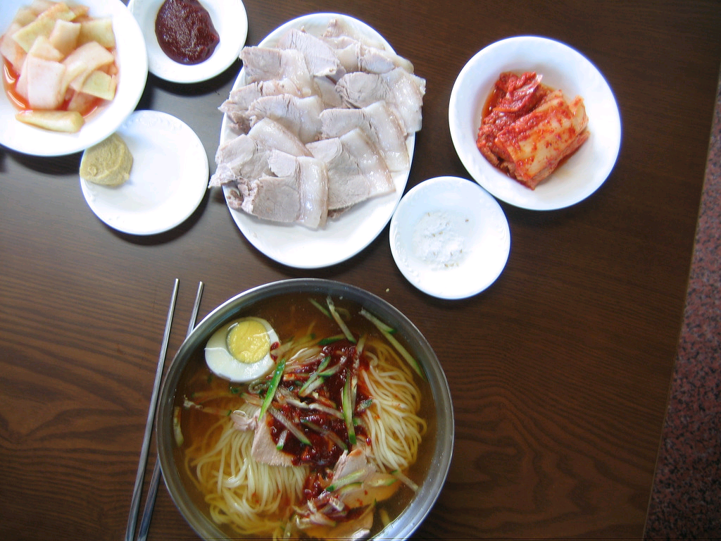 밀면은 본래 부산이 유명하다. 그럼에도 올레 10코스 종점인 모슬포에는 밀면으로 유명한 식당이 있다. 일찍 문을 닫기 때문에 빠르게 식당으로 향한다. 물 밀면 한 그릇과 수육 한 접시. 시장한 배에 수육 한 점을 밀면에 싸 먹으니 정말 맛이 좋다. 2대째 내려오는 이 식당은 항상 사람들로 붐빈다. 이외에도 모슬포는 자리돔의 주산지라서 여름에는 자리물회로도 유명하고 방어의 주산지이기도 하여 가을에는 방어 축제도 열린다.