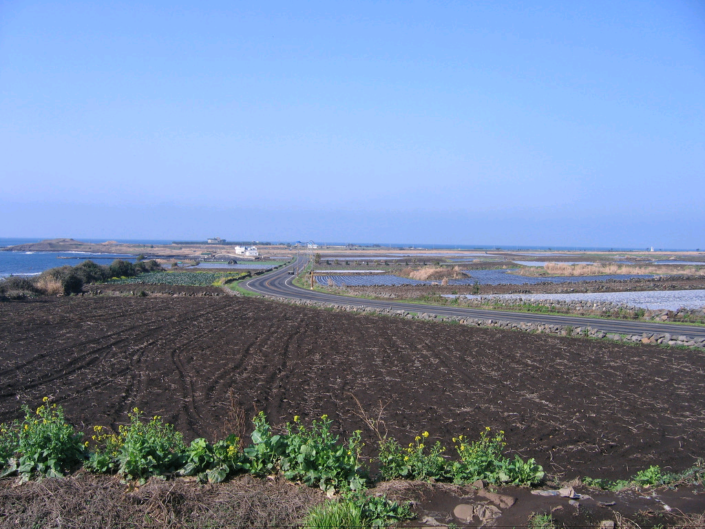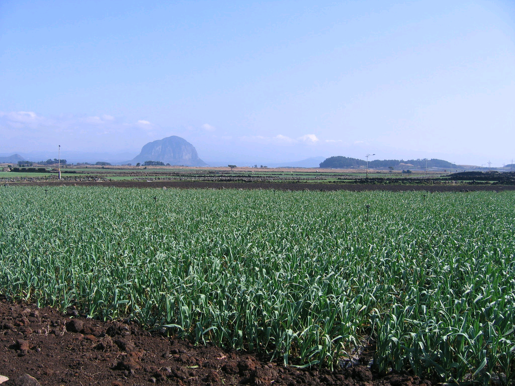 제주에는 돌이 많다. 그래서 밭을 일구기가 힘들다. 땅을 파면 팔수록 날카로운 돌들이 끊임없이 나온다. 그래서 기계도 함부로 쓰기가 어려워 사람의 손이 많이 간다. 사람들은 밭을 일구다 힘이 들면 저 바다에서 들판으로 불어오는 바람에 땀을 식히고 한숨을 돌렸을 것이다. 그 고된 일의 결과로 들에는 가지런히 심어놓은 밭작물들이 파란 싹을 틔우며 올라오고 있다. 스프링 쿨러가 '슉슉슉' 소리 내며 물을 뿌리고 젖은 흙에서 나는 냄새는 바람 냄새와 섞여 계절의 냄새가 되어 내개 다가온다. 그 옆으로는 느림의 미학을 표현이라도 하듯 구부러진 아스팔트 길이 바다를 향해 나있다. 그 풍경들을 마음에 담아 본다. 아픔이 있는 땅이었지만 지금은 그 고통들을 이기고 선 땅. 그리고 제주의 사람들. 아마도 저 멀리 보이는 산방산은 그 모든 것들을 알고 있을 것이다.