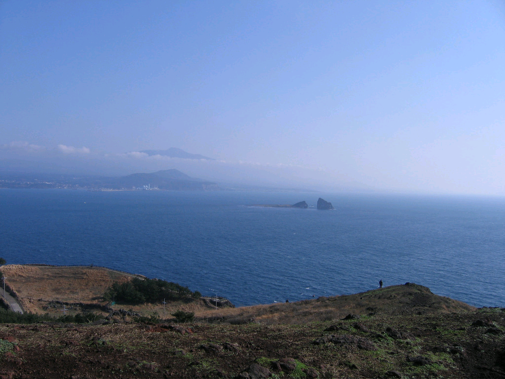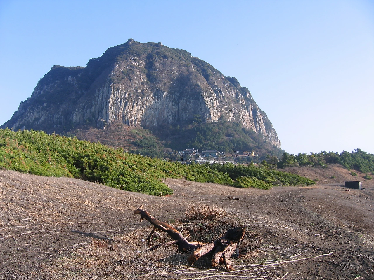 송악산에 오른다. 단거리 육상선수가 전력질주를 할 때처럼 고개를 푹 숙이고 가야 할 만큼 바람이 세다. 경사가 가파르고 쉽게 부서지는 흙 때문에 미끄러지기가 일수다. 하지만 정상에 오르자 잠깐의 힘듦은 당연히 치루어야 할 대가였다는 것을 인정하게 한다. 푸른 바다 뒤에 서있는 산방산과 그아래 길게 드러누워 있는 용머리 해안. 무인도인 형제섬이 다정히 서로를 바라보고, 그 멀리에는 한라산이 구름을 뚫고 서있다. 바다 빛이 너무 고와 이쁘게 솟아 있는 산방산 앞 푸른 바다로 풍덩 뛰어들고 싶은 마음이다. 바람은 더욱 세차게 불어 오지만 아름다운 풍경에 쉬이 자리를 뜨기가 힘들다. 그렇게 송악산은 제주 남쪽의 모든 풍경을 품에 안고 있는 산이다.