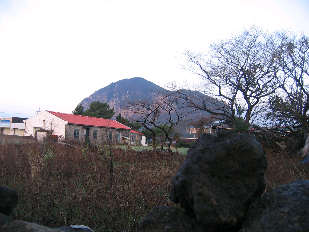 단 한 번도 뒤척거리지도 않고 깊은 잠을 잔 것 같다. 눈을 뜨니 먼저 천장이 보였고 방 한쪽에 있는 작은 창문도 보인다. 그 너머를 바라 보니 어제는 비 때문에 눈에 담기지 않았던 마을과, 멀리 우뚝 서있는 둥그런 산이 보였다. 오늘 하루 나의 길동무가 되어줄 커다란 산. 그렇게 산방산은 영험한 기운을 품으며 내 눈앞에 서 있었다.