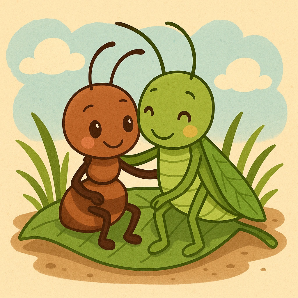 베짱이는 개미의 성실함에, 개미는 베짱이의 위트와 건강한 에너지에 끌렸고 서로 사랑하게 됐다.