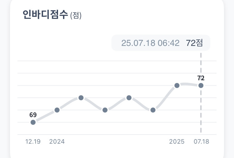운동 3년 차. 69점에서 72점으로 올랐다.