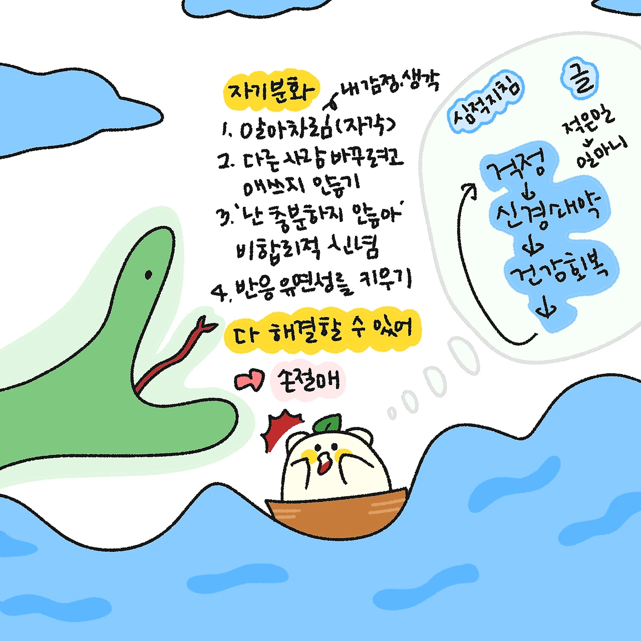 어린왕자에 나오는 뱀이 코끼리 대신 내 걱정을 먹어치우면 좋겠다.
