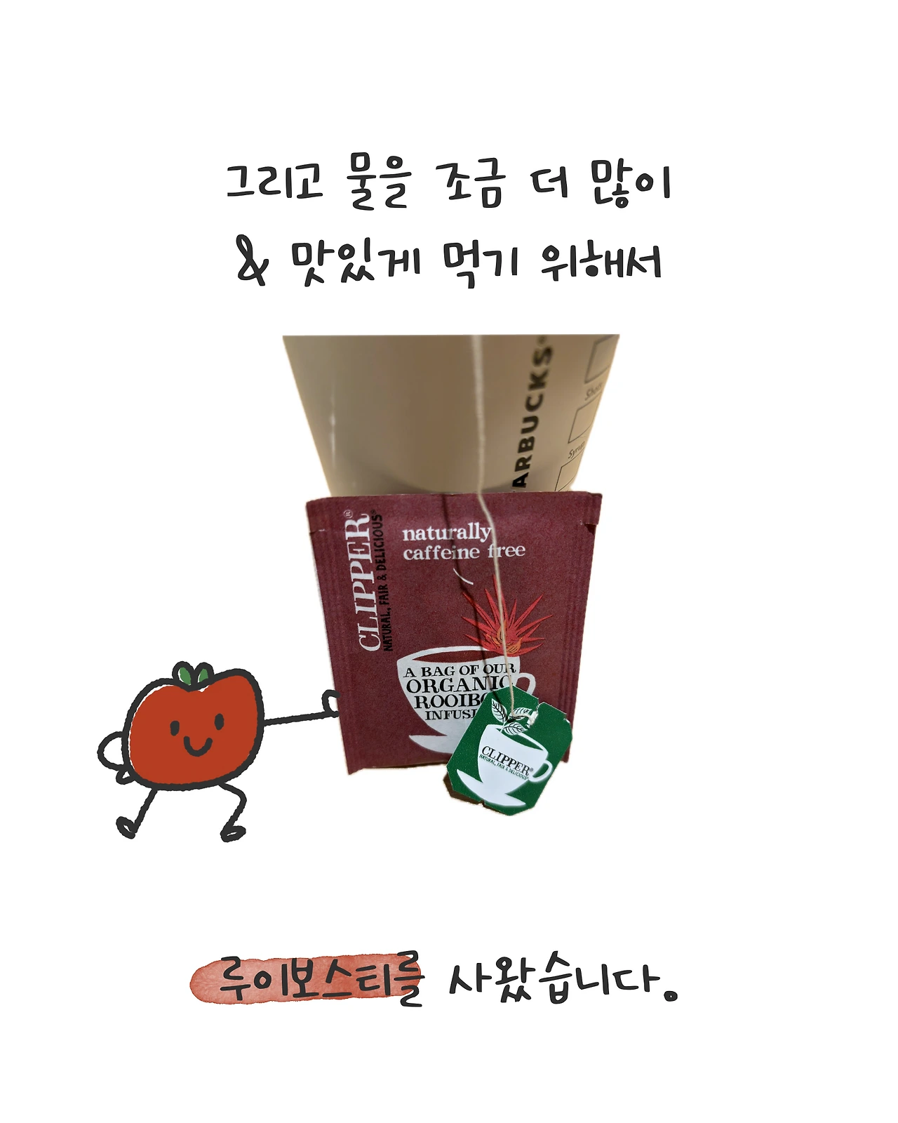 물도 더 많이 마시려고 루이보스도 구매했습니다.