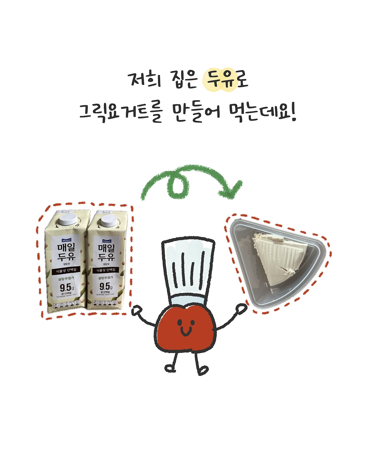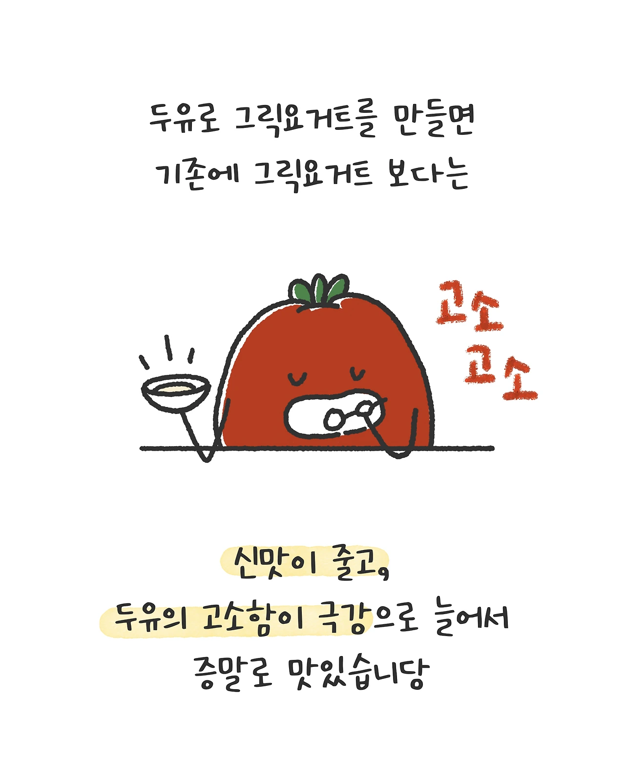 저는 평소에도 그릭요거트를 자주 먹었지만, 요거트 특유의 신맛이 약간 아쉬웠거든요 그런데, 두유로 그릭요거트를 만들어 먹은 뒤부터, 신맛이 줄고 고소함이 늘어서 매일 아침 잘 챙겨먹고 있어요