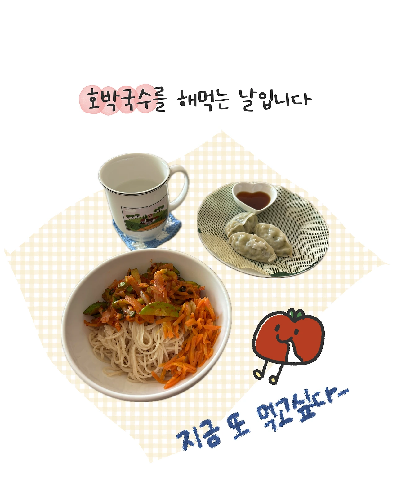 레시피는 @mato_nee님의 유튜브를 참고했는데요! 호박국수는 고춧가루의 매콤함과 호박의 달콤함에 아주아주 잘어울리는 비빔국수예요. 매콤한 걸 좋아하시는 분이시라면 강추드려요!