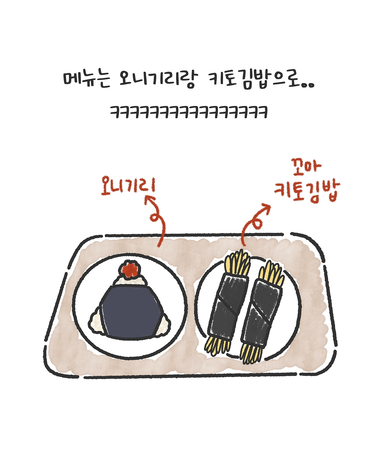 장보러 가다가 길가에 있는 작은 가게를 보고 뜬금없이 가게를 해보고 싶다는 생각을 했습니다. 메뉴는 건강하게 만든 오니기리와 꼬마 키토김밥으로.. (하하) 메뉴가 서로 안어울리는 것 같지만, 그냥 제가 오니기리와 키토김밥이 먹고싶어서 그런 생각을 한 것 같아요. 누가 저희 동네에 오니기리와 키토김밥 가게를 내주셨다는 그런.. 소망이 생긴 하루였습니다.