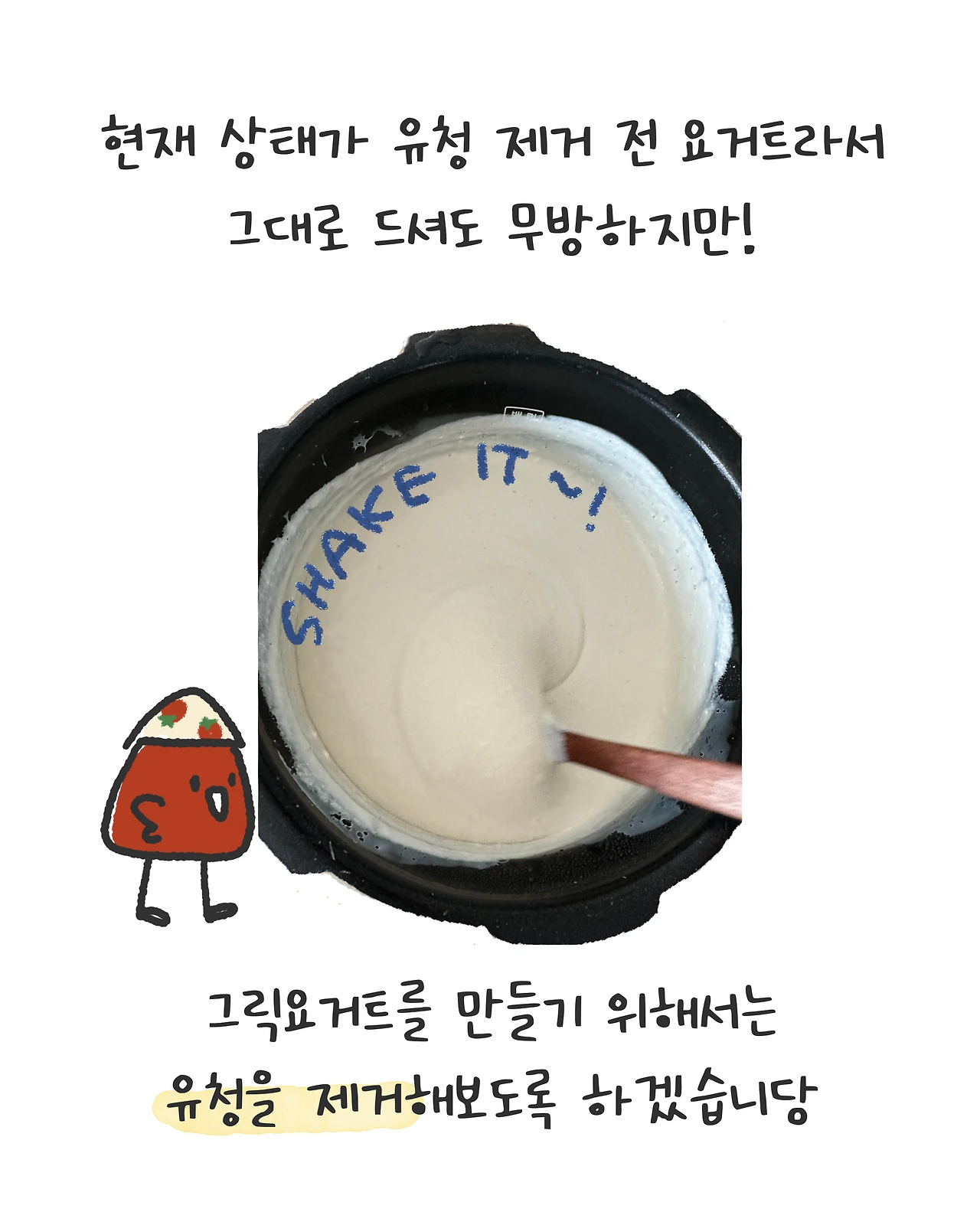 8. 또 다시 충분한 시간이 지나 유청이 빠지면, 꾸덕한 그릭요거트 완성입니다 :-)