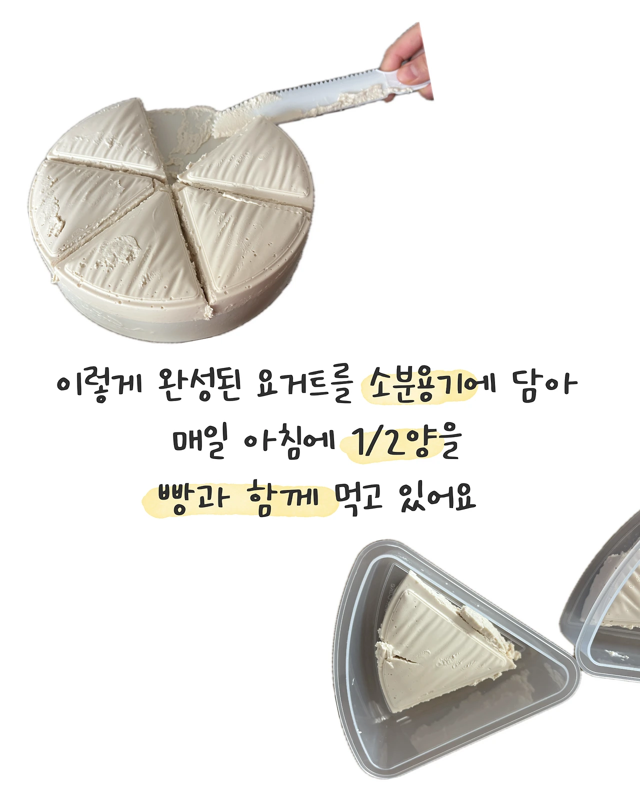 이렇게 완성된 요거트를 소분용기에 담아 매일 아침 반정도 빵에 발라 먹고 있어요!