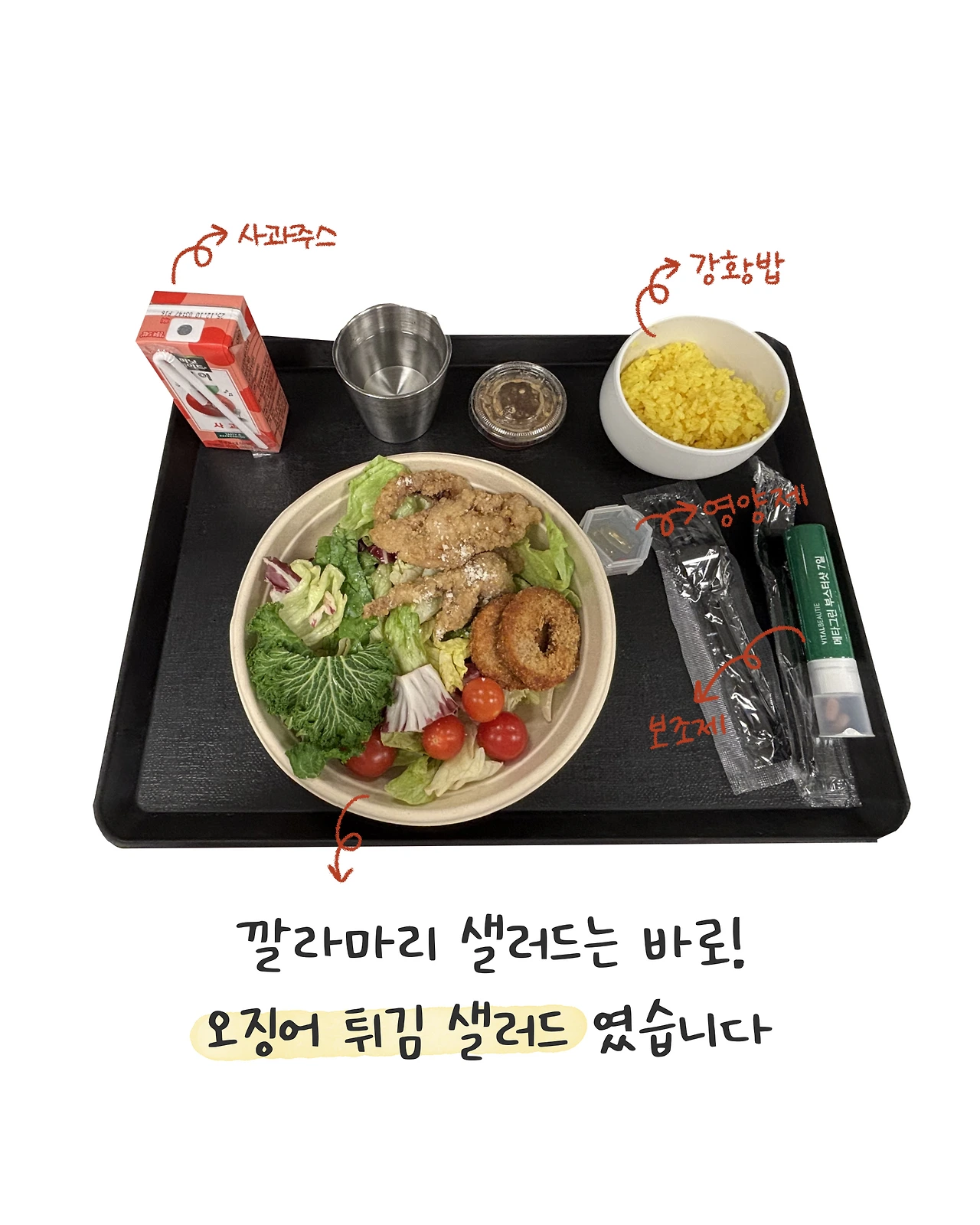 당연하게도 밀가루와 멀리 해야하는 저에게는 한줄기 빛같은 튀김 샐러드였어요 :-)