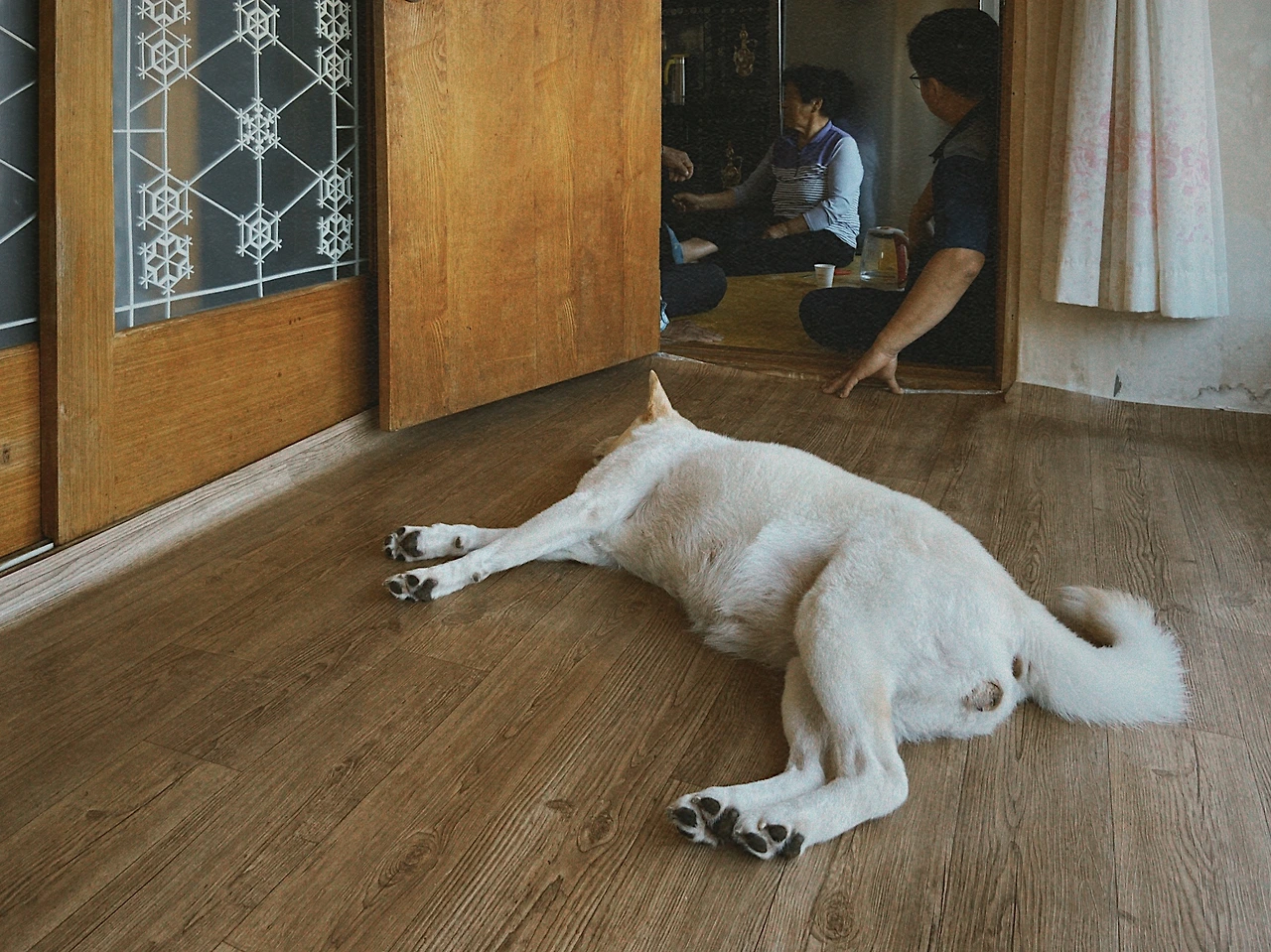 똘이는 우리 집을 스쳐간 여러 멈머들 중 시골 할머니, 할아버지 집 방바닥에 대자로 누운 최초의 강아지로 기억되는 영광을 안았다. 똘이가 얼마나 대단한 업적을 남겼는지는 '최초'라는 단어가 말해준다. 그렇다. 우리 할머니, 할아버지는 동물을 좋아하시만 그 표현은 무뚝뚝하니 겉으로 드러나는 법이 없고, 털 있는 짐승은 절대 밖에서 살아야 한다는 명확한 기준을 가지고 계시다. 다행히도 연세가 들면서 우리 집을 거쳐간 아이들이 함께 살 부대끼며 살아가는 모습을 본 탓에 당신들이 지켜온 명확한 기준은 '우리가 생활하는 집'으로 축소될 수 있었다.
