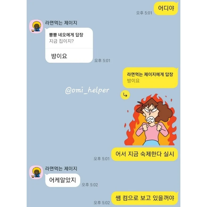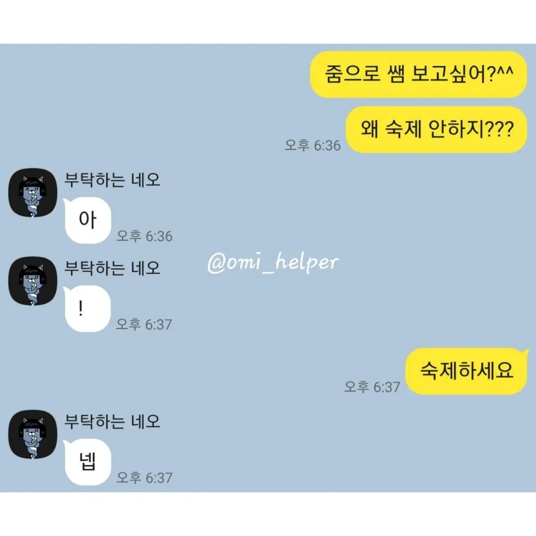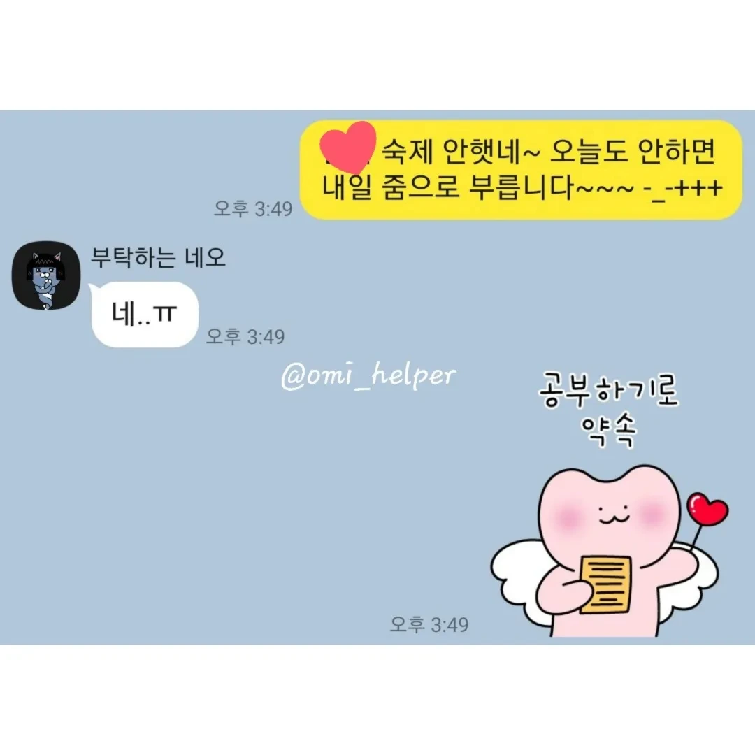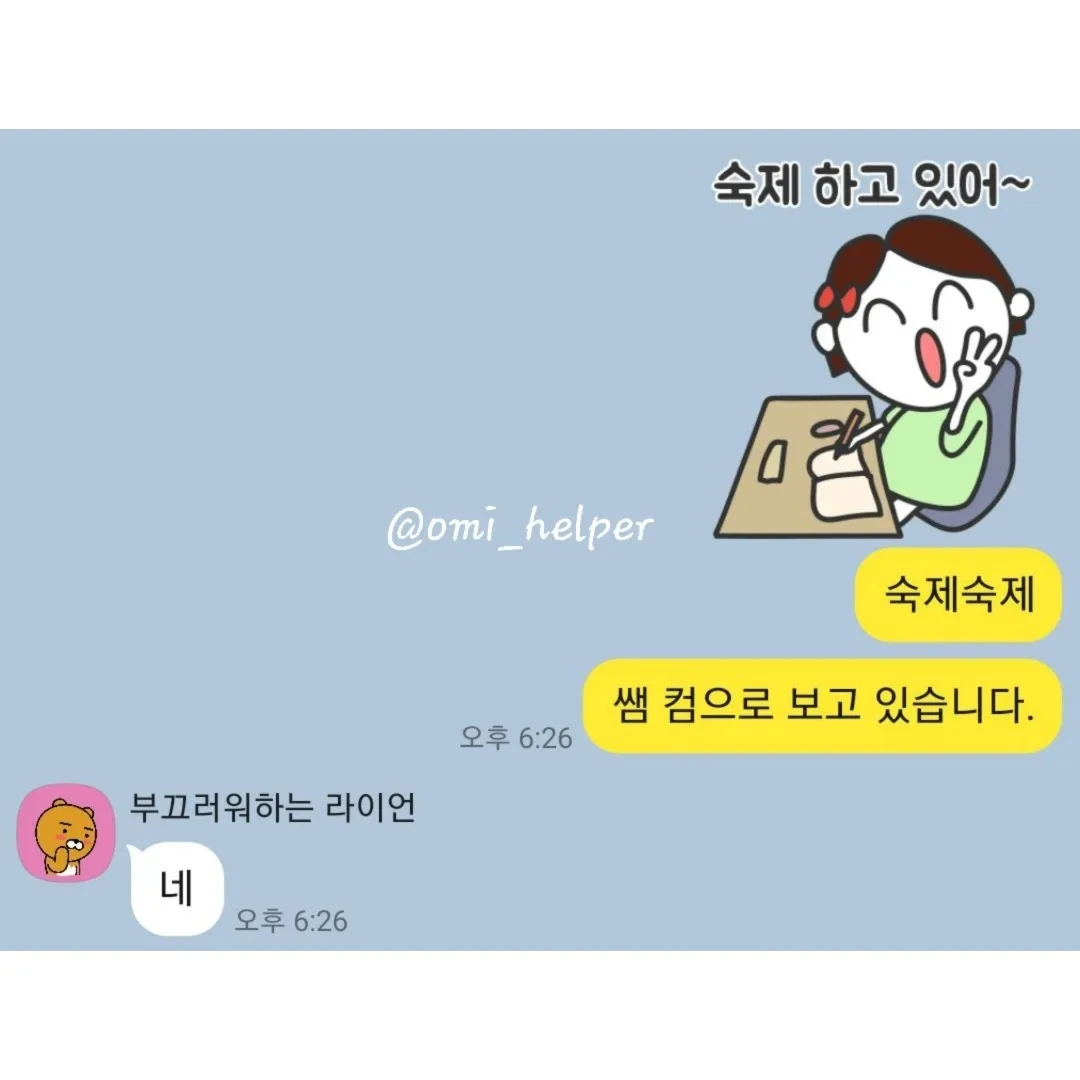 날 줌에서 만나고 싶지 않으면 좋은 말 할때 숙제해라.