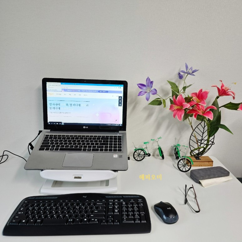 장비병 있는 딸이라, 노트북 받침대와, 무선 키보드, 마우스까지 장착해드렸다.
