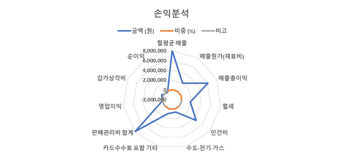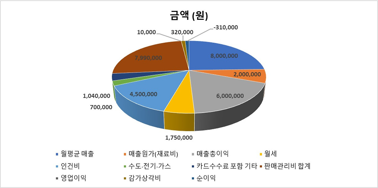 영업이익은 고작 1만 원. 여기에 감가상각비까지 더하면 매달 31만 원의 순손실이 발생합니다. 이는 사업을 할수록 자본이 잠식되는, 일명 '밑 빠진 독에 물 붓기'와 다를 바 없습니다.