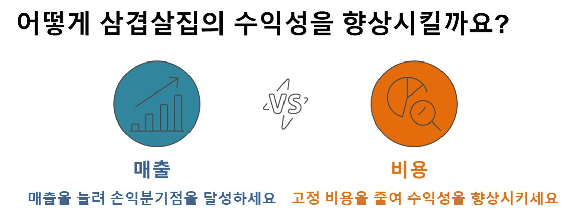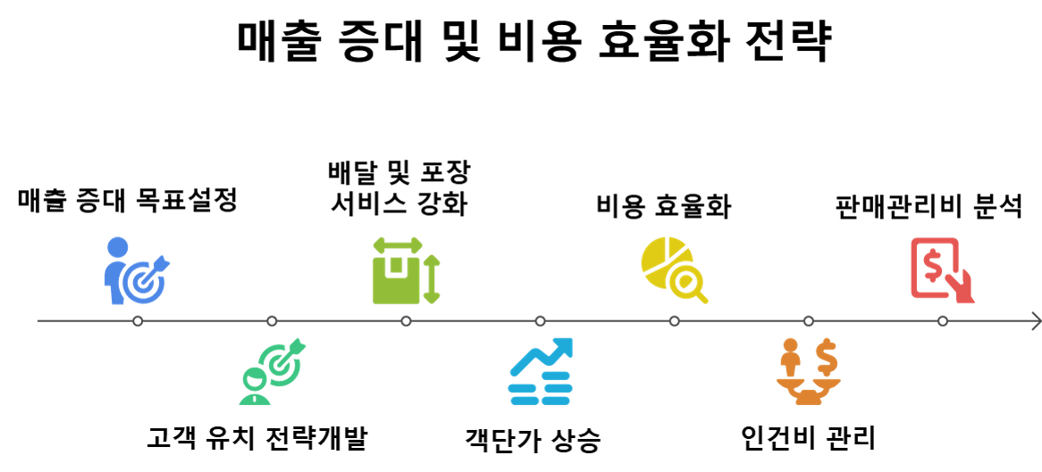 객단가 상승: 사이드 메뉴를 강화하고, 세트 메뉴를 구성하며, 주류 판매를 증대하는 등 고객 1인당 쓰는 돈을 늘리는 방법을 고민해야 합니다.