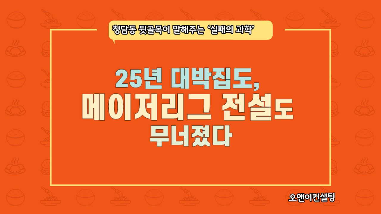 무려 25년 동안이나 문전성시를 이루며 강남 상권의 터줏대감으로 군림했지요. 37년 전문가로서 제 커리어의 큰 자랑이자 자부심이기도 했습니다. 하지만 영원한 승자는 없더군요. 그 전설적인 매장조차 코로나 팬데믹을 거치며 치솟는 임대료와 인건비, 즉 ‘고정비’의 파고를 넘지 못했습니다.