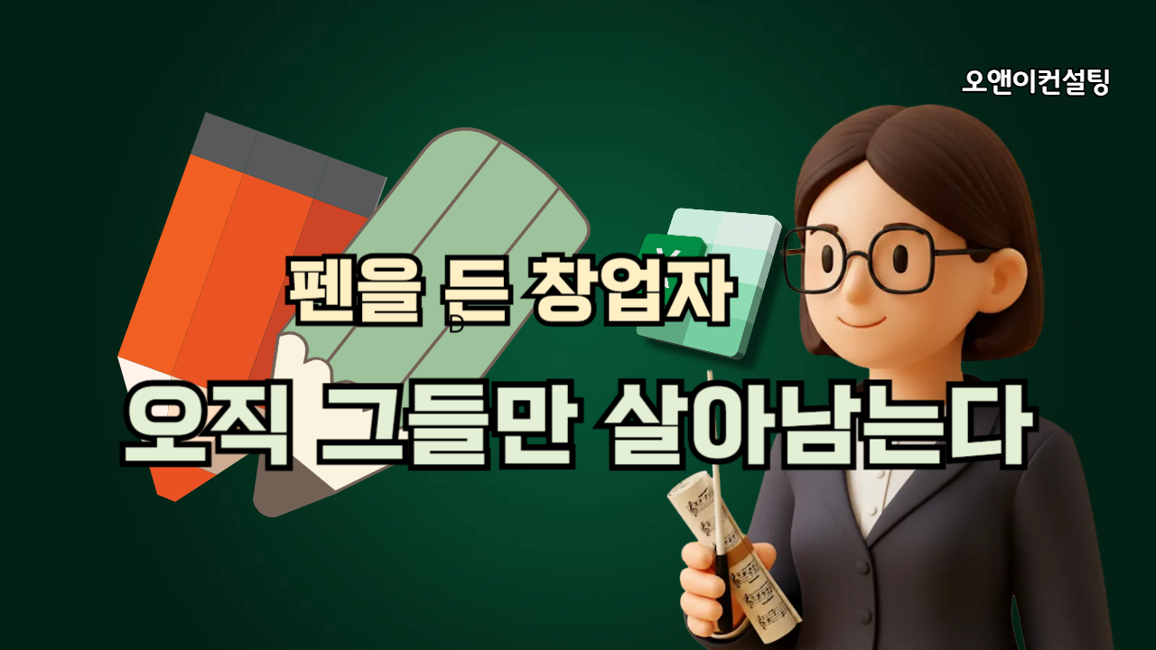 가장 위험한 사장님은 '부족한 사장님'이 아닙니다. 자신의 부족함을 감추고 '완벽한 척하는 사장님'입니다. 오늘 밤, 거울 속의 나를 있는 그대로 직면하는 용기를 내보십시오. 스스로의 운명을 종이 위에 적어 내려가는 사람, 즉 '펜을 든 창업자'만이 이 거친 시장에서 끝까지 살아남아 승리할 수 있습니다.