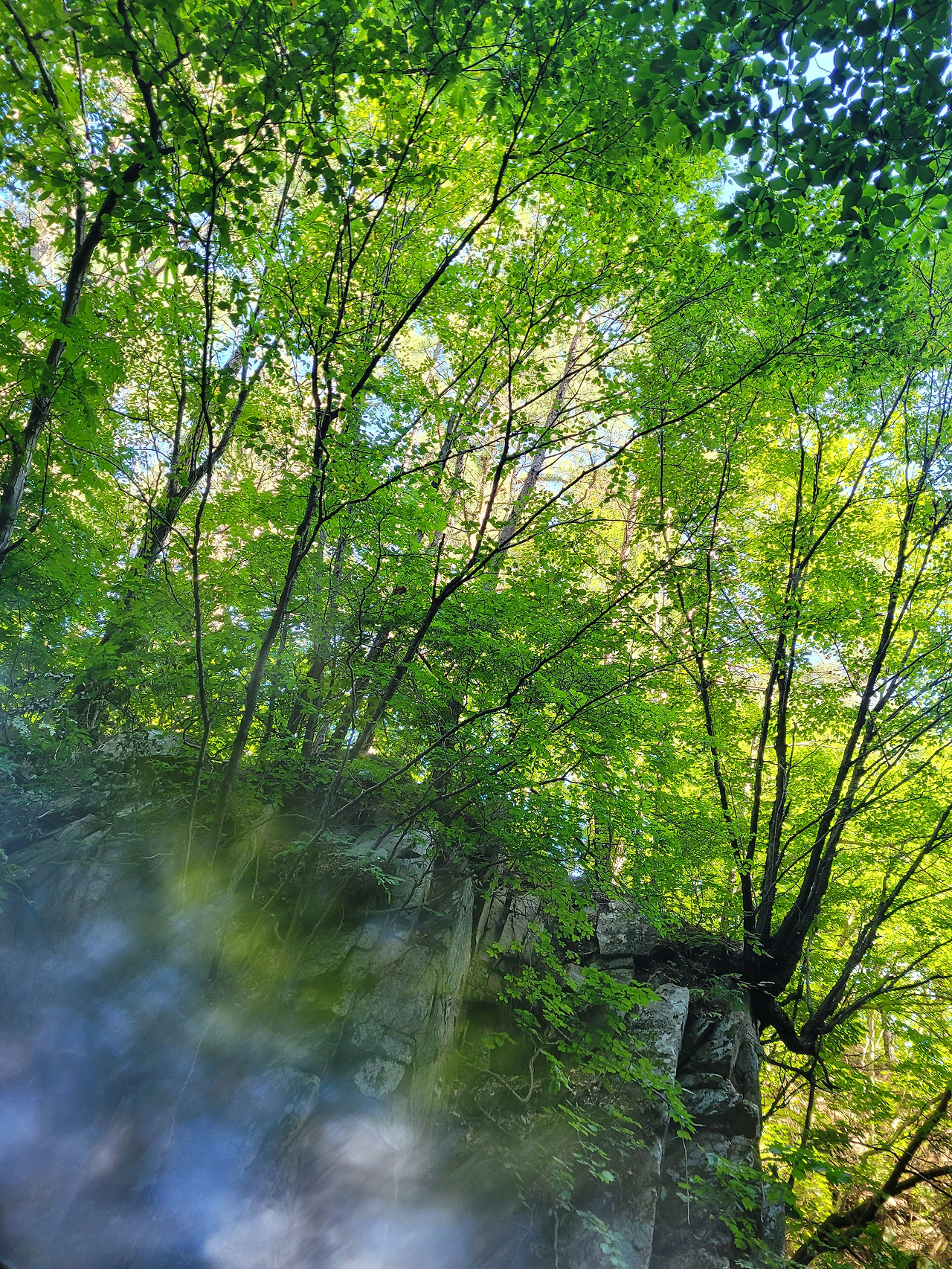 조그만한 계곡이라 진입로가 몇 개 없다. 그 하나의 통로는 신기하게도 아치형의 문처럼 양쪽으로 자라난 나무가 입구를 만들고 있는데, 그 몇 걸음 사이로 공기가 바뀐다. 진입하자마자 서늘하다고 해야 할 정도의 냉기가 전신을 감싸는데, 그 극적인 차이는 회사에서 계곡으로 배경이 전환된 이유도 있다.